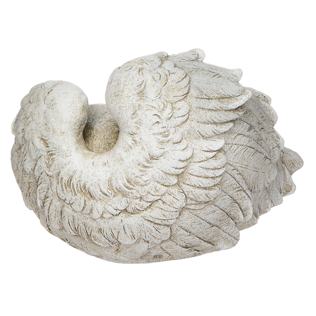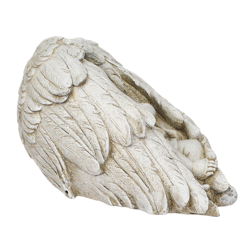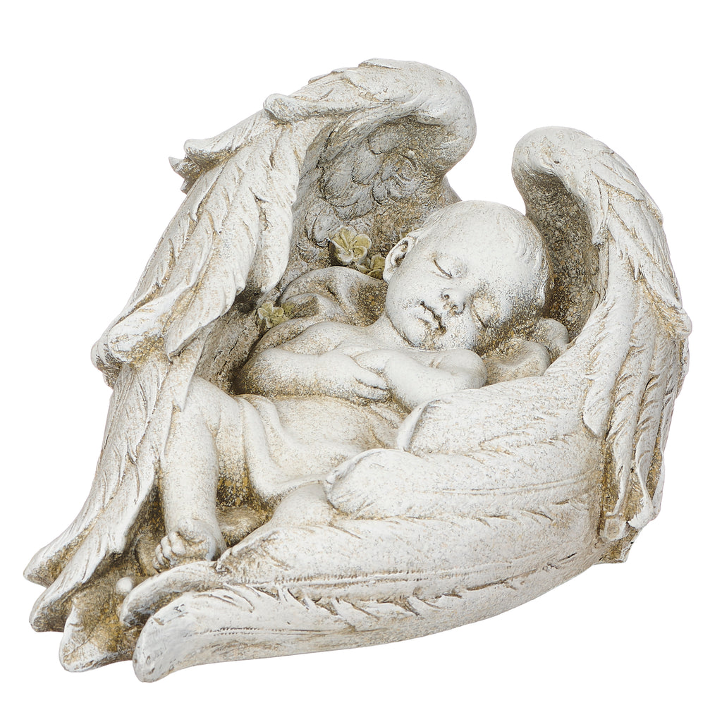Bring a sense of serenity to your garden or memorial space with this tender sculpture of a sleeping baby curled within angel wings. Crafted to capture both innocence and protection, this piece offers a comforting presence wherever it's placed‚ perfect for remembering a loved one or enhancing a spiritual outdoor area