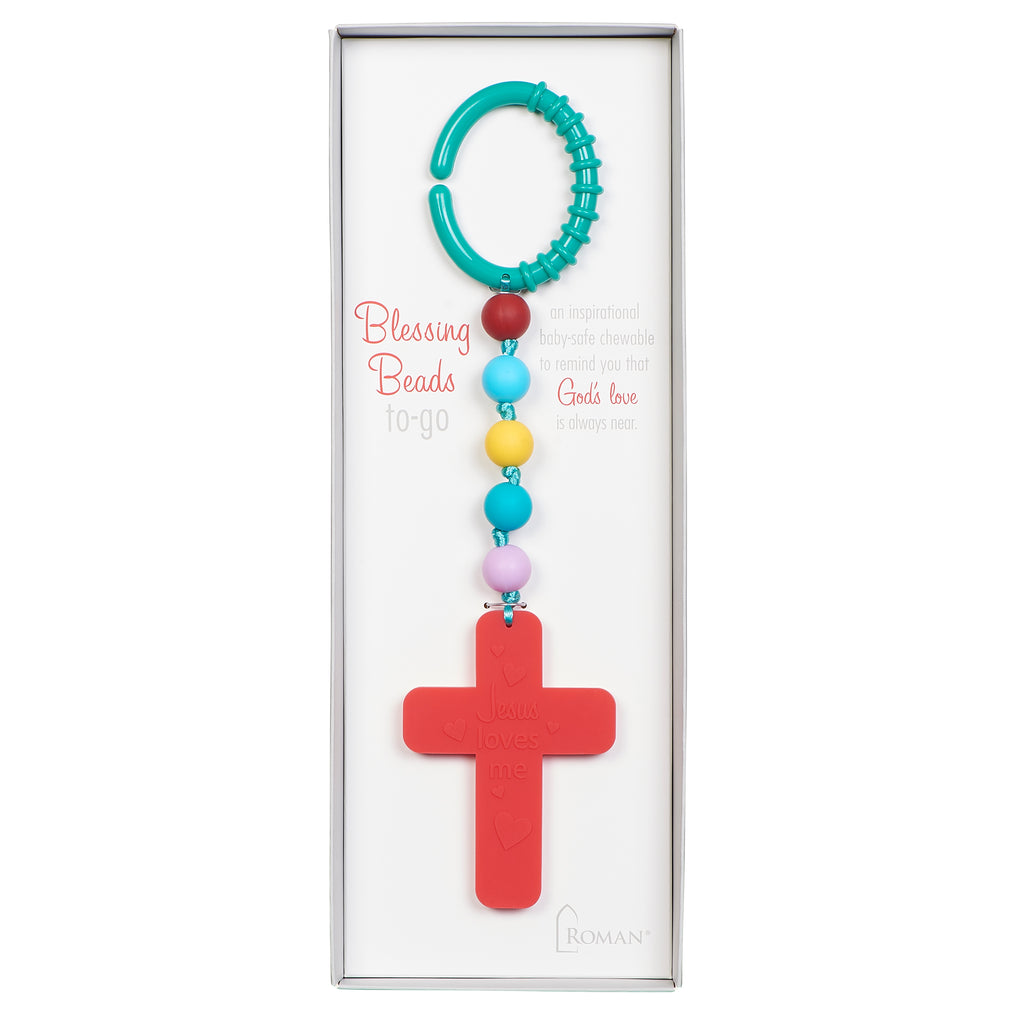 Designed for little hands and faithful hearts, this Blessing Beads To-Go set keeps faith close throughout the day. Crafted from smooth, baby-safe silicone, it features rainbow-colored beads and a bold red cross embossed with the words “Jesus Loves Me.” Perfect for teething, sensory play, or quiet reflection, it offers both comfort and meaning. The flexible loop easily attaches to strollers, car seats, or diaper bags, making it a treasured companion wherever life takes you.