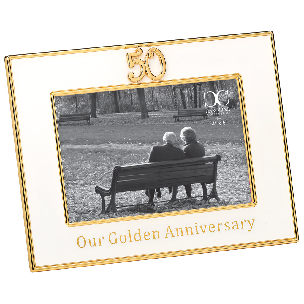 Commemorate five decades of devotion with the 50th Anniversary Photo Frame. Crafted from durable metal, it features elegant gold trim, a raised “50” emblem, and the heartfelt inscription “Our Golden Anniversary.” With its timeless design, this frame is both a meaningful keepsake and a thoughtful gift to celebrate a golden milestone, adding elegance to any home.