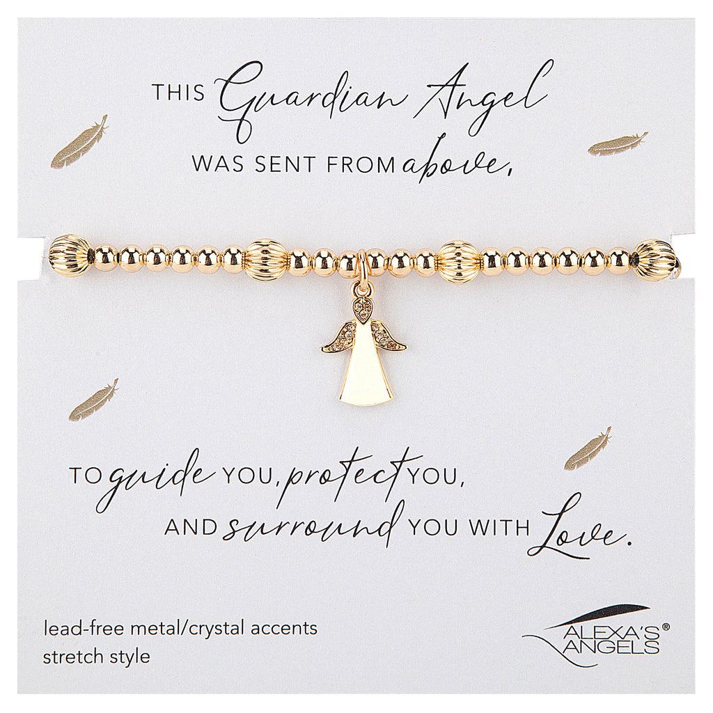 Carry a symbol of divine protection and heartfelt comfort with the Guardian Angel Bracelet. Designed with a sparkling angel charm and crystal-accented wings, this bracelet is available in radiant gold or silver tone. Each bracelet comes on a card with an inspiring message: