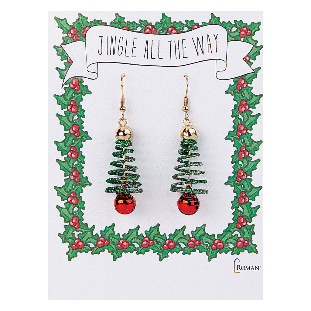Bring playful holiday charm to your style with these festive Jingle Bell Tree Earrings. Designed with a whimsical tree shape topped with a golden bead and finished with a bright red jingle bell, they add merry sparkle and movement to any outfit. Perfect for parties, stocking stuffers, or everyday seasonal wear, these earrings arrive carded and ready for gifting.