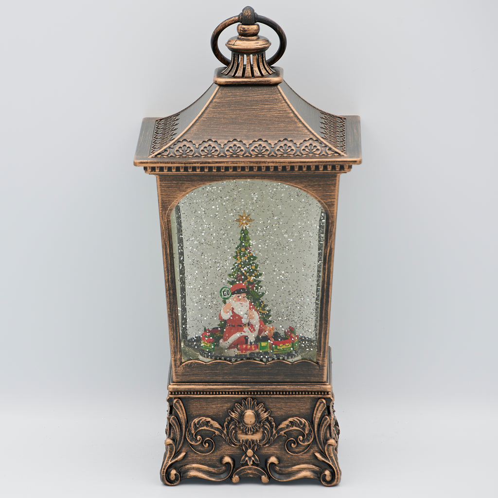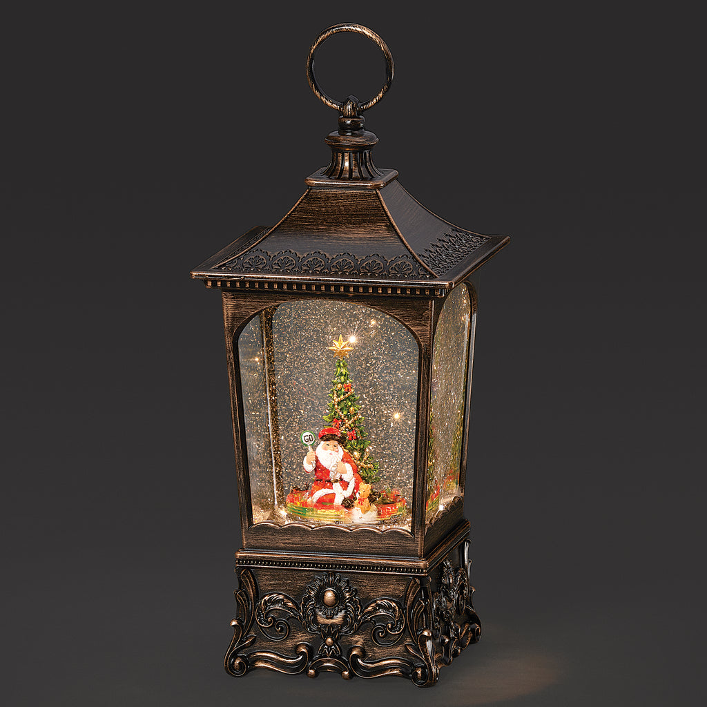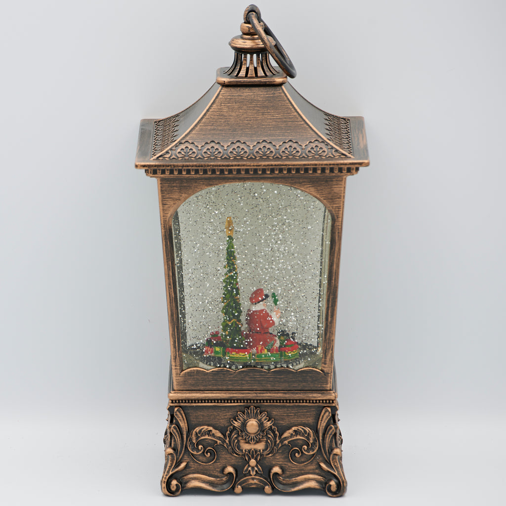 Add movement and melody to your holiday décor with this festive lighted swirl lantern. Inside, Santa is joined by a rotating train as glitter sparkles in the glow of warm illumination. Playing classic Christmas tunes, this enchanting piece brings joyful sound, light, and motion to mantels, tabletops, or seasonal displays.
