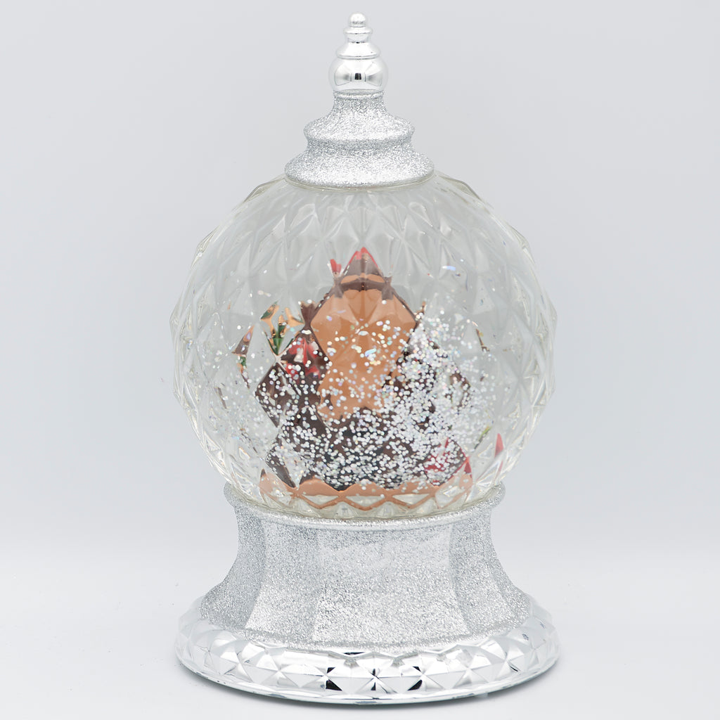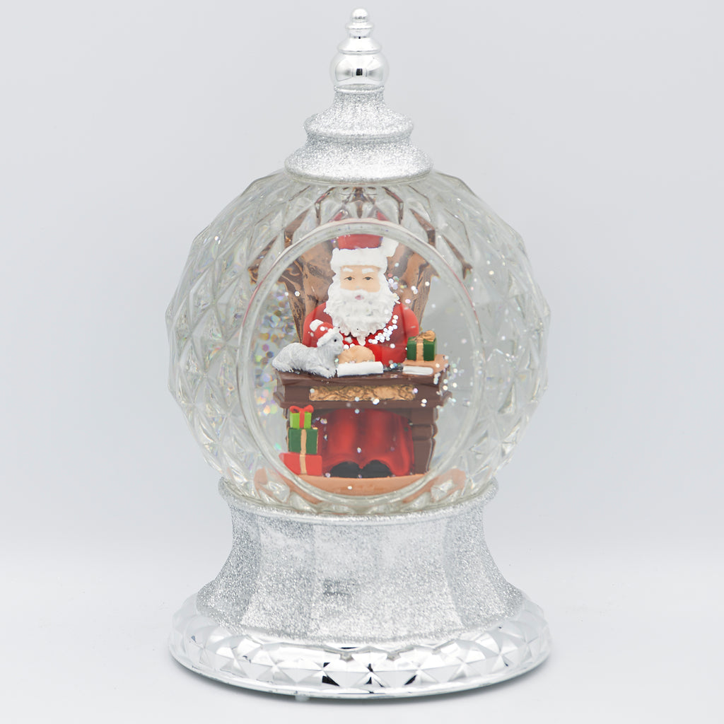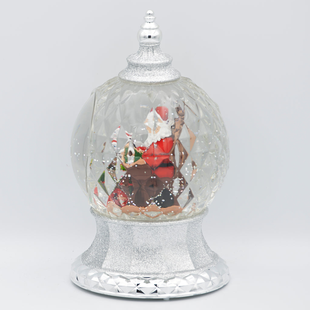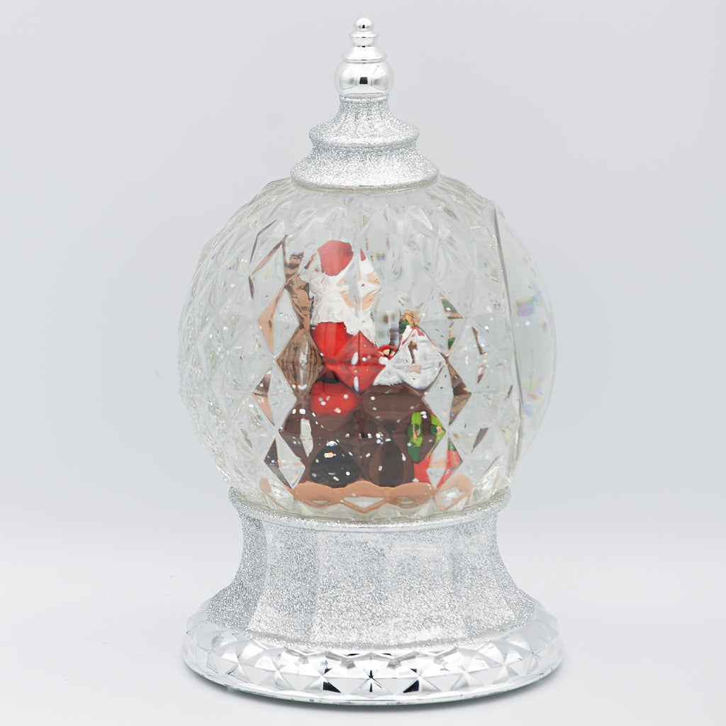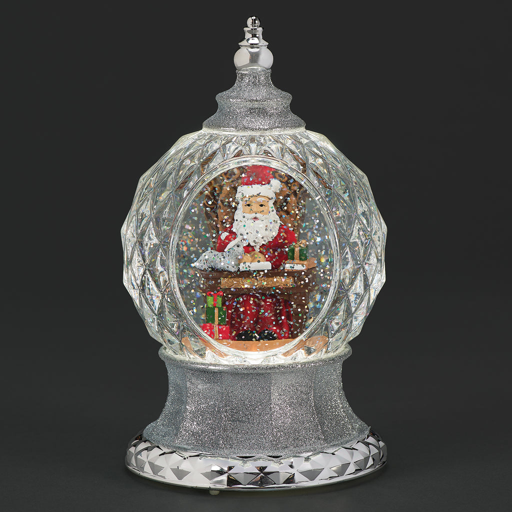 Add festive sparkle with this unique lighted swirl faceted dome. Inside, Santa checks his list as swirling glitter catches the light from every angle of the multi-faceted design. The glowing illumination enhances the magical effect, making this piece a stunning holiday centerpiece for mantels, shelves, or tabletops.