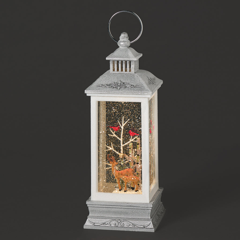 Bring woodland serenity to your space with this lighted swirl lantern featuring a gentle deer and bright cardinal in a tranquil forest setting.