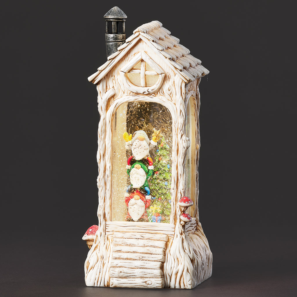 Bring festive charm to your space with gnomes joyfully decorating a Christmas tree inside a glowing swirl lantern. A playful scene to light up your holidays.