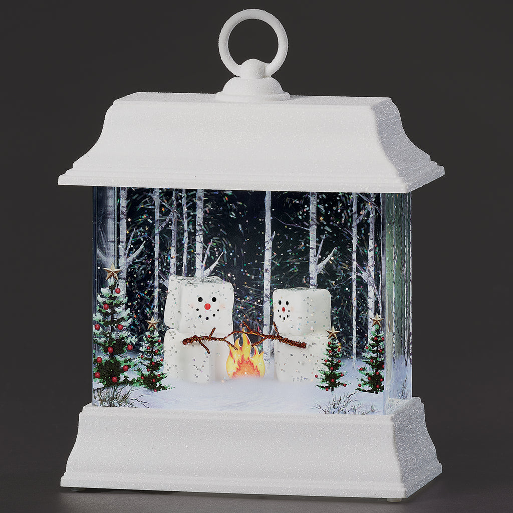 Cozy up your décor with this whimsical lighted swirl lantern. Marshmallow characters gather around a crackling fire, while swirling glitter sparkles in the glow of warm light. A playful holiday accent, it adds campfire magic to mantels, shelves, or seasonal displays and makes a unique gift for those who love fun and festive décor.