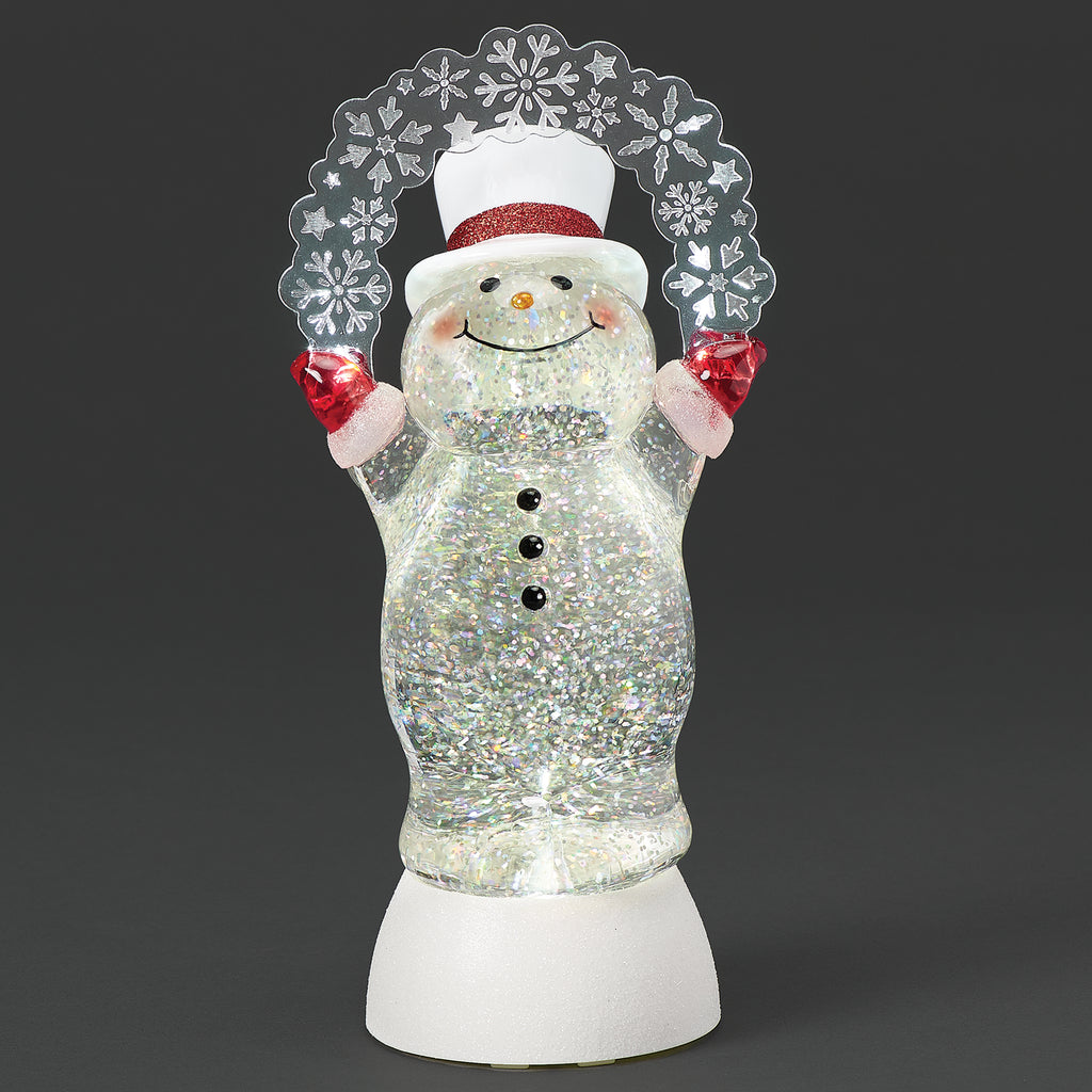 Illuminate your holiday decor with this cheerful lighted swirl snowman, adorned with blinking snowflakes and a bright, joyful expression. Swirling glitter and twinkling lights combine to create a lively, festive centerpiece that brings warmth, cheer, and seasonal sparkle to your celebrations.