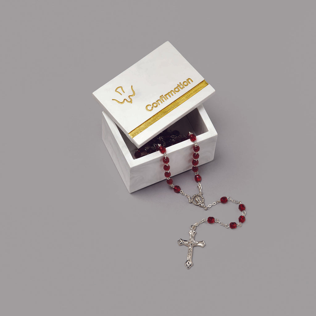 Celebrate the sacrament of Confirmation with this elegant marble keepsake box, thoughtfully designed to hold treasured devotional items. Featuring a classic marble-look finish with gold-tone accents and “Confirmation” detailing on the lid, this keepsake offers a meaningful way to store a rosary or other small mementos. A timeless gift for Confirmation, it’s perfect for preserving faith-filled memories for years to come.