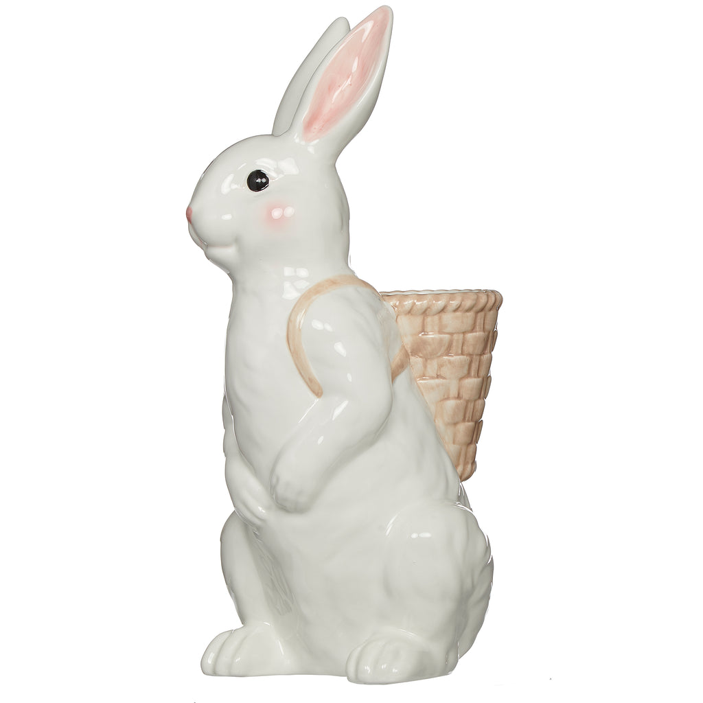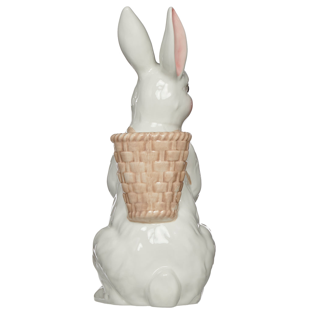 Add a charming touch of spring to your home or garden with this Bunny with Basket on Back Planter. Crafted from smooth ceramic, this sweet bunny features a woven-style basket resting on its back, perfect for displaying faux florals, small plants, or seasonal accents. The playful yet elegant design makes it a delightful centerpiece for Easter décor, tabletops, mantels, or covered outdoor spaces. Whether styled with colorful blooms or left on its own, this whimsical planter brings warmth, personality, and festive cheer to any setting.