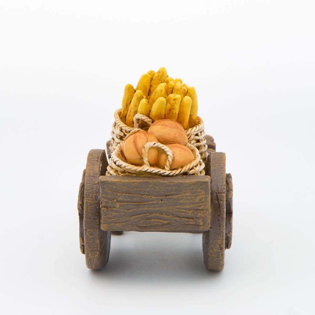 Bring the bustle of the Bethlehem marketplace into your Nativity with this detailed stationary Bread Cart. Filled with woven baskets of loaves and golden baguettes, the cart reflects the daily life and simple provisions that sustained families in the time of Christ’s birth. From the wood-grain texture of the cart to the carefully sculpted bread, every detail enriches the authenticity of your display. Pairs perfectly with Fontanini's Village Bakery Collection.