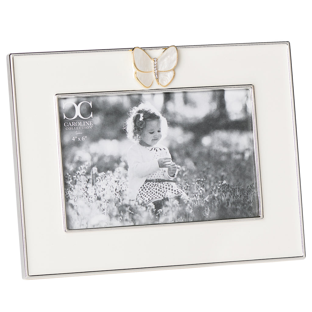 This Butterfly Frame from the Caroline Collection features an elegant gold-trimmed butterfly with pearlescent and crystal accents. Designed to showcase a special photo, it symbolizes transformation, grace, and new beginnings. A heartfelt keepsake or gift to honor milestones and memories.