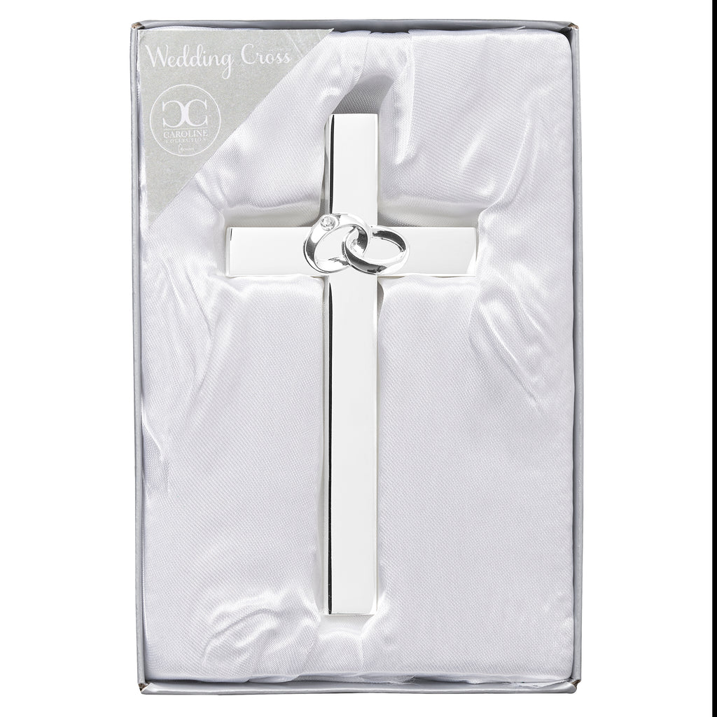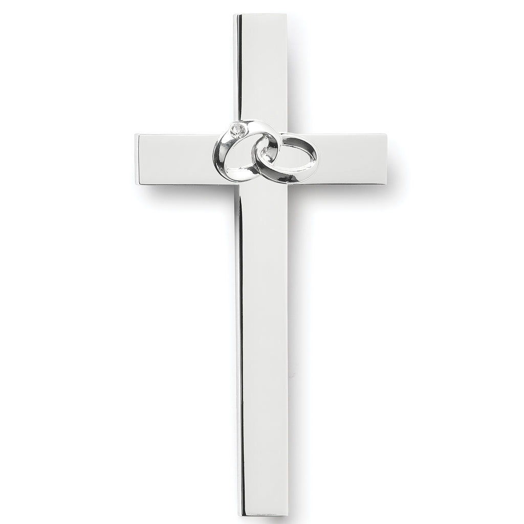 From the Caroline Collection, this sleek silver cross features two interlocking wedding rings at the center‚ symbolizing eternal love and spiritual unity. Made from polished metal, it's ideal for displaying during weddings, vow renewals, or as a lasting keepsake in your home.