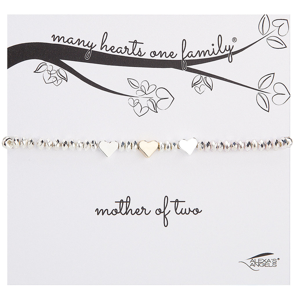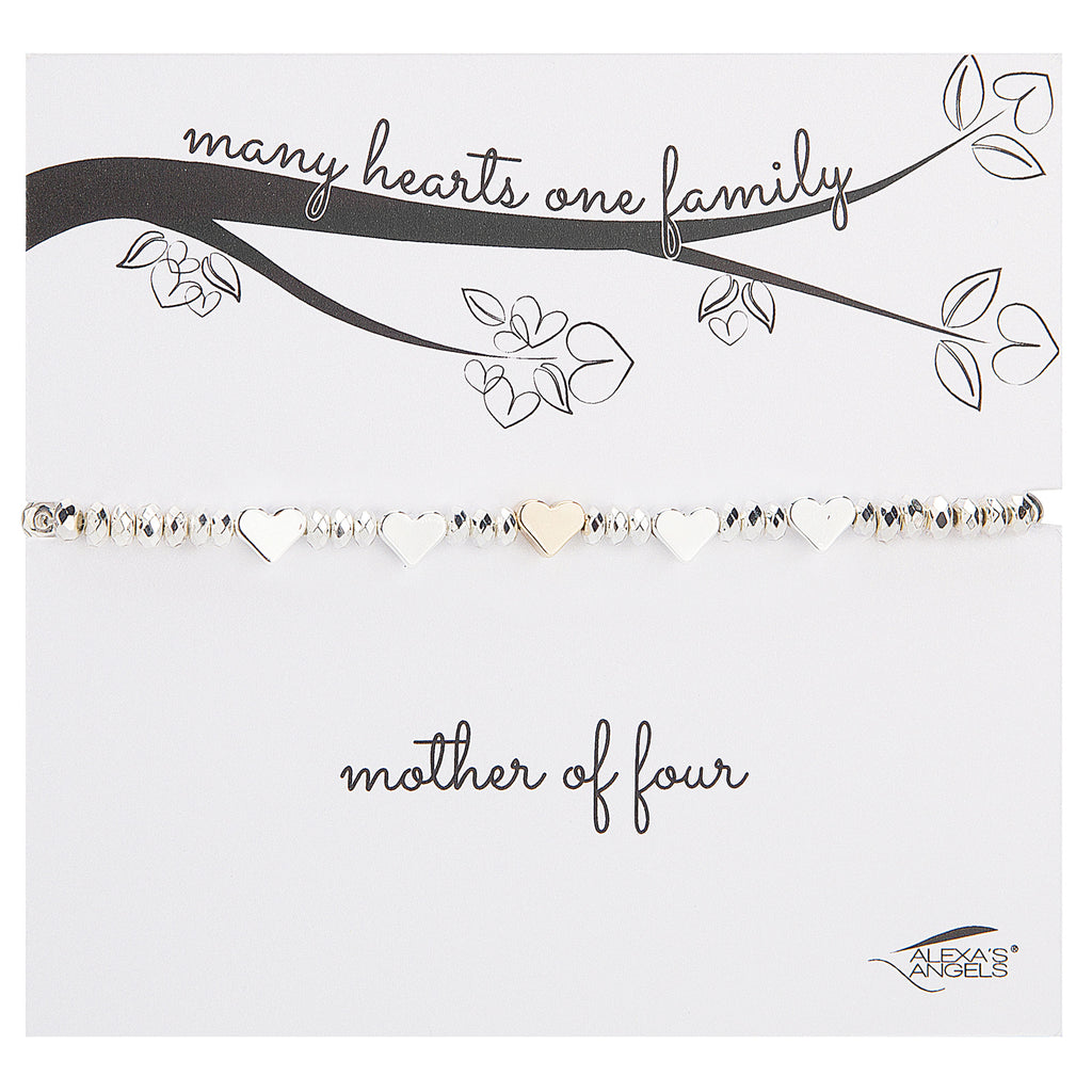 Celebrate motherhood with the Many Hearts Family Bracelet. Featuring a central heart for mom and up to four smaller hearts for her children, this stretch bracelet honors love, connection, and family.