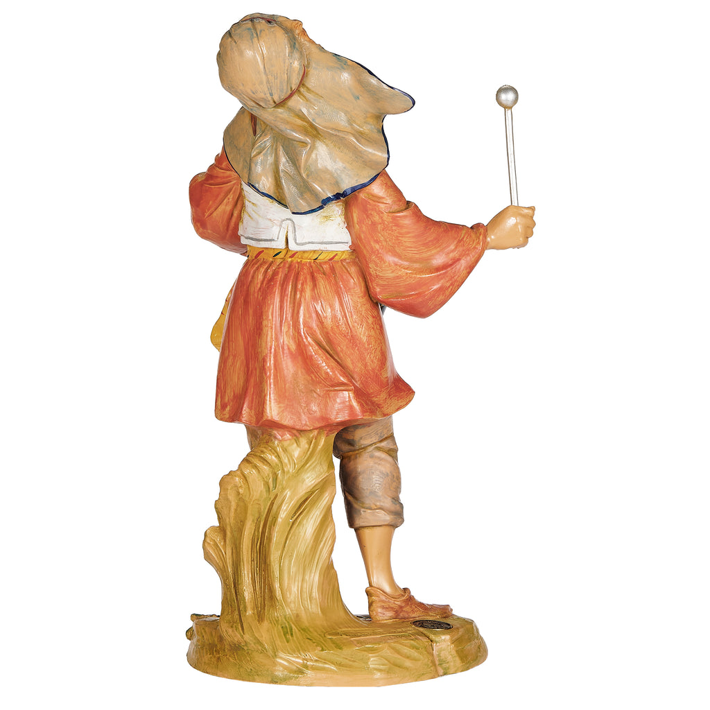 Jareth, the Drummer Boy, is remembered for bringing the only gift he could offer the Christ Child—his song. With no riches to give, he played his drum with all his heart, and tradition tells us that the Baby smiled at the sound. This figure captures that moment, showing Jareth in mid-stride with his colorful drum slung across his chest and a joyful expression lifted toward heaven. His presence in your Nativity display serves as a reminder that the greatest gift we can give is not material, but the offering of ourselves in love and devotion.
