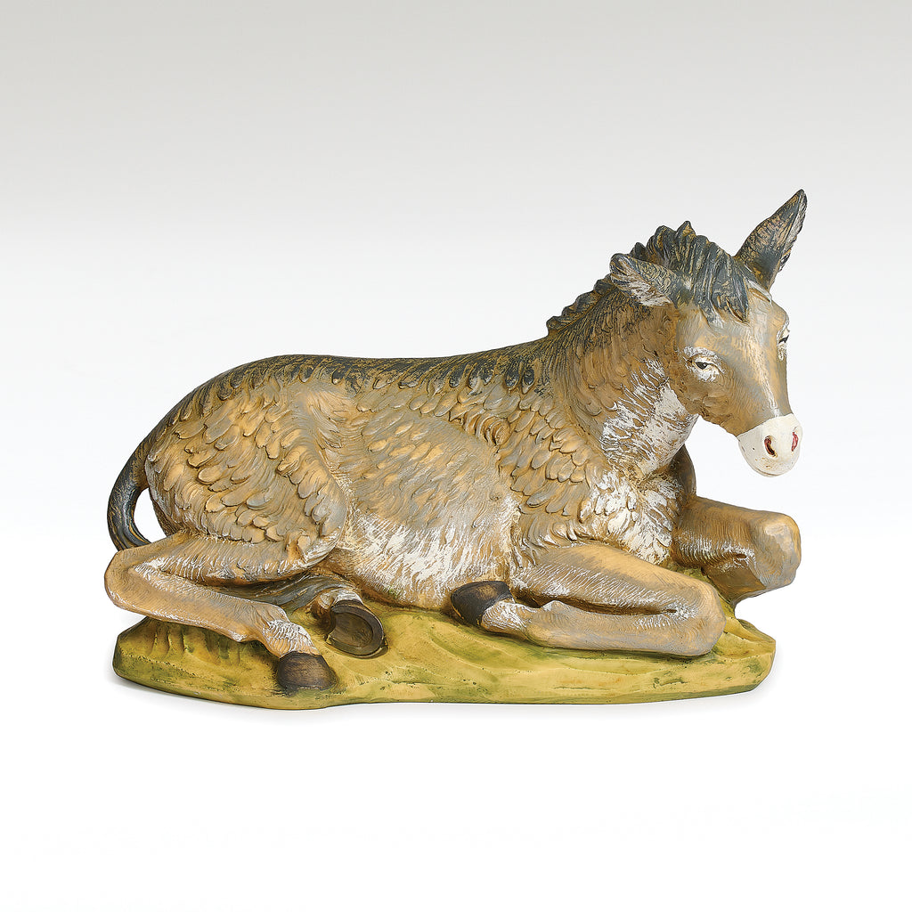 The donkey holds a place of honor in the nativity story, remembered as the faithful animal that carried Mary on the journey to Bethlehem. Fontanini’s 20" scale donkey captures this humble role with lifelike detail—its textured coat, expressive face, and resting posture speak of quiet endurance and service.