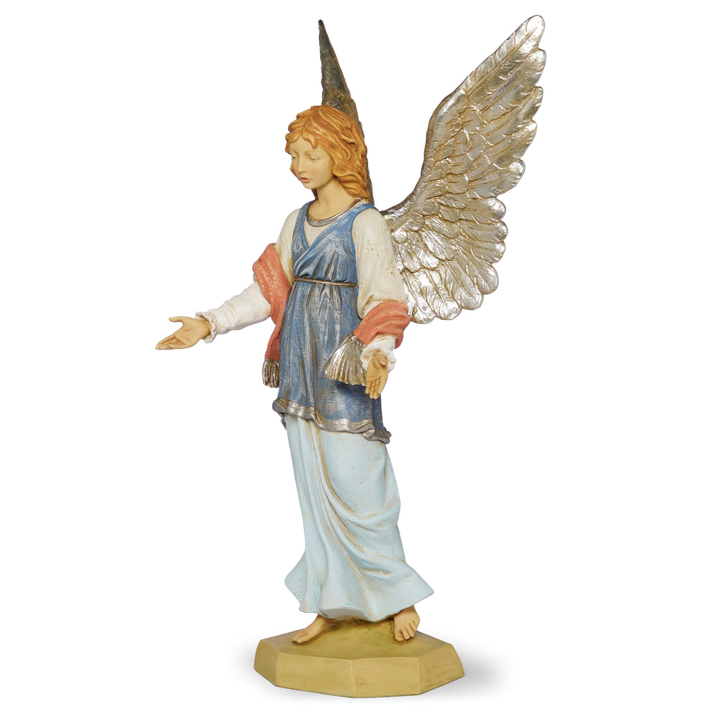 The Standing Angel radiates peace and reverence, serving as a heavenly presence within your nativity display. With arms gracefully extended in welcome and blessing, this angel reminds us of the divine message proclaimed on the night of Christ’s birth. The flowing robes in soft hues of blue and rose, paired with silver-accented wings, create a sense of light and movement. The figure stands tall as a guardian presence, ideal for larger home and church displays.