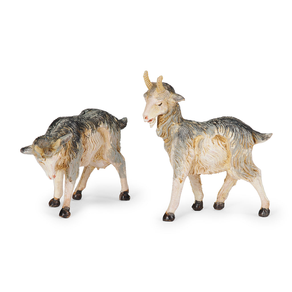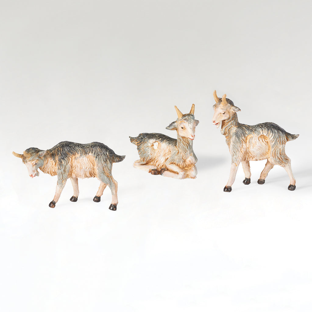 Bring the rustic life of the countryside into your Nativity with this 3-piece Goat Set. Featuring two standing goats and one resting, each figure is detailed with textured coats, curved horns, and lifelike stances that capture the hardy animals so common in the fields of Bethlehem. Their presence not only enriches the shepherds’ story but also adds movement and variety to your display, grounding it in the humble setting of Christ’s birth.