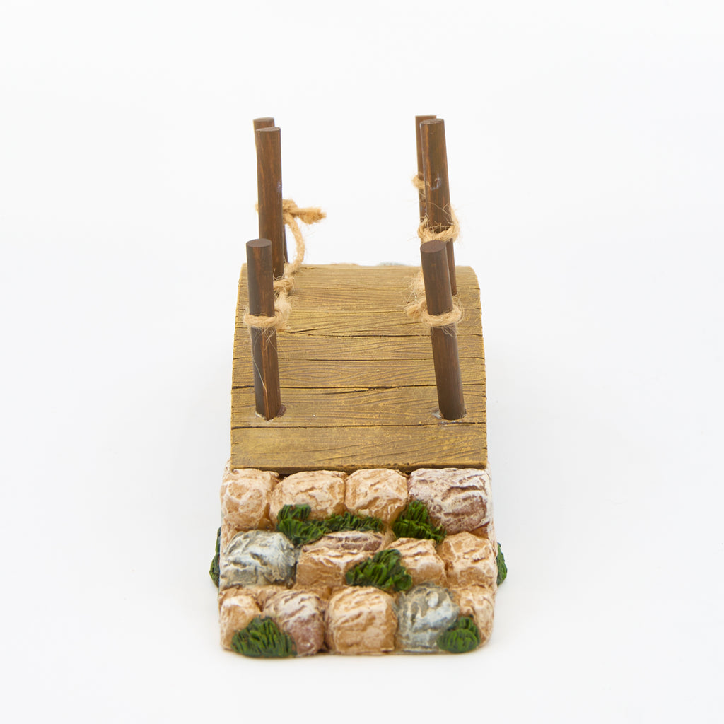 The Rustic Rope Bridge adds a striking architectural detail to your nativity village or marketplace scene. Designed with a textured wooden plank walkway, knotted rope railings, and stone bases with moss accents, it captures the look of an old-world crossing. This piece creates natural flow between areas of your display, helping figures and animals appear connected as they journey toward Bethlehem.