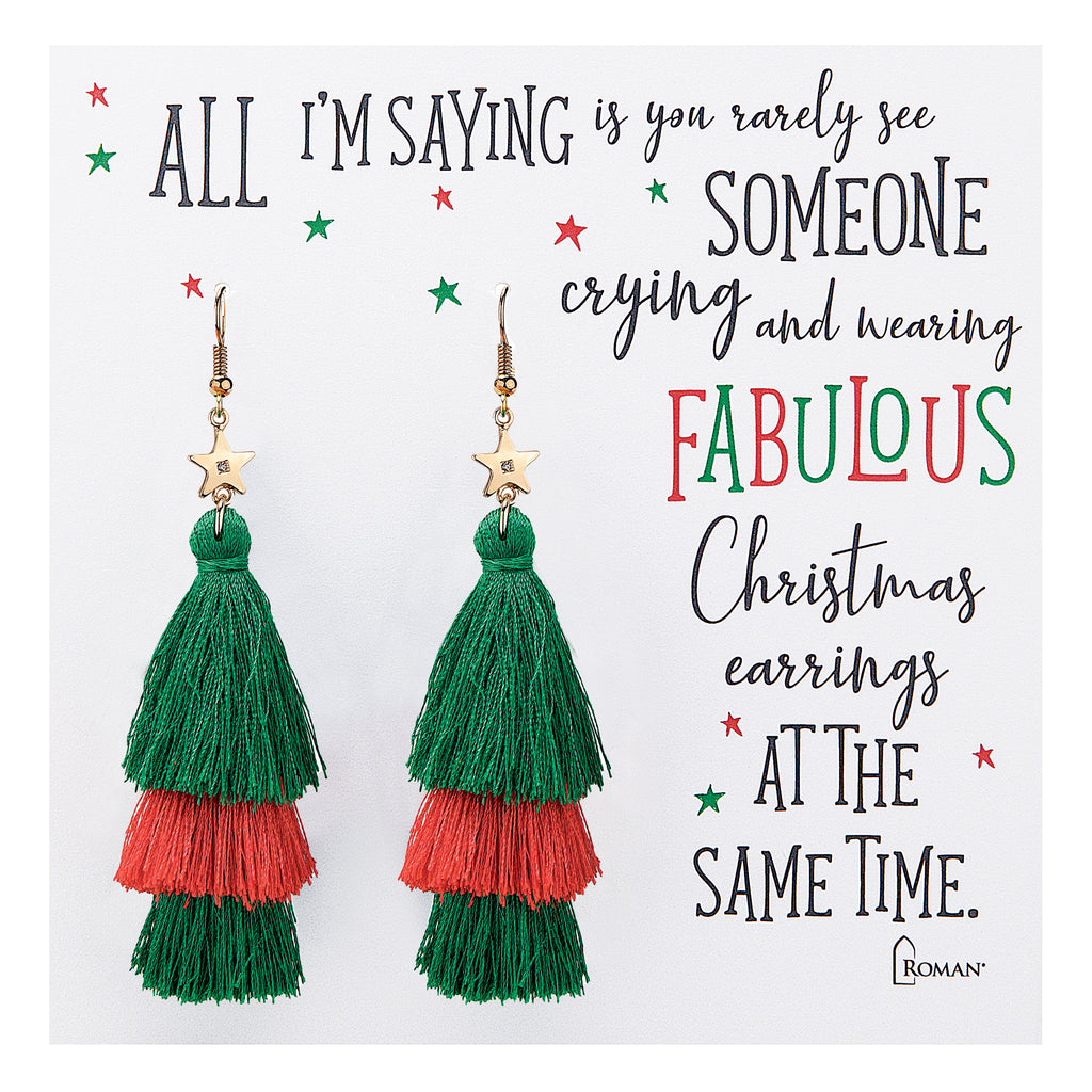 These Christmas Tassel Earrings are a playful way to add festive flair to your holiday style. Designed in bold layers of green and red, they bring the perfect pop of seasonal color to any outfit. Topped with star accents, they capture the joyful spirit of the season and make a lighthearted statement at parties, dinners, or casual gatherings. Whether you’re gifting them to someone special or wearing them yourself, these earrings are sure to spread holiday cheer with every twirl.