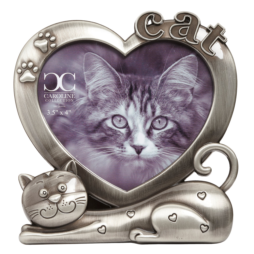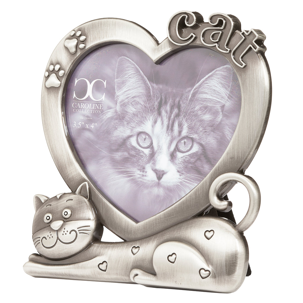 Celebrate the love for your feline companion with this heart-shaped cat frame from the Caroline Collection. Adorned with playful pawprint accents and a sculpted cat design, it offers a charming way to display a favorite photo. Perfect for shelves, desks, or tabletops, this frame is both a thoughtful gift for cat lovers and a meaningful keepsake to honor a cherished pet.
