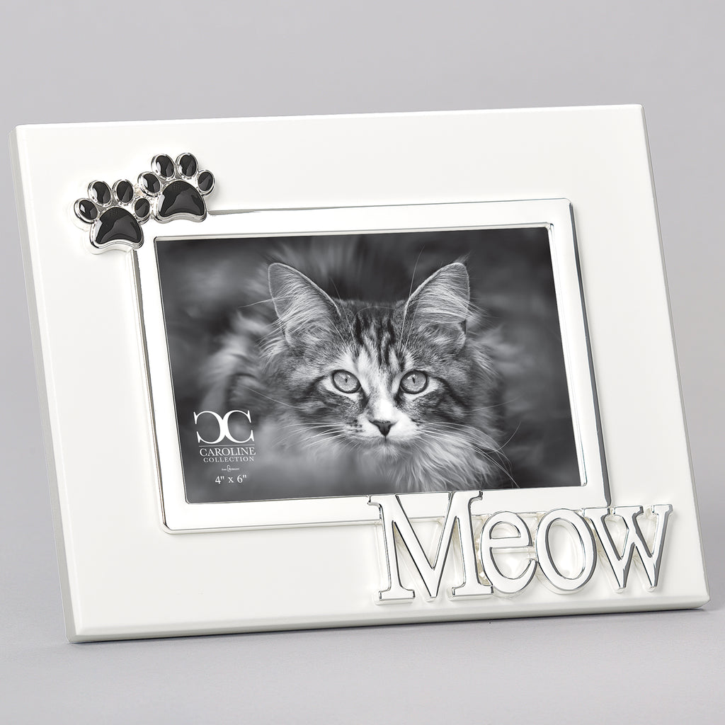 Celebrate your feline friend with this stylish frame from the Caroline Collection. Featuring glossy black paw prints and raised metallic “Meow” lettering, it’s a playful yet elegant way to showcase a treasured photo. Perfect for desks, shelves, or as a thoughtful gift, this frame adds charm and personality to any cat lover’s home.