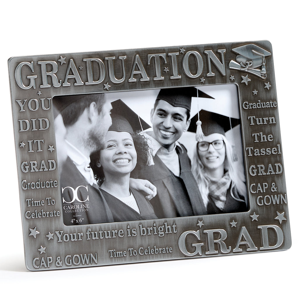 This elegant Graduation Frame from the Caroline Collection features a muted black finish with a classic cap and diploma accent. The word “Graduation” is subtly embossed along the top, creating a refined design that celebrates achievement while showcasing a proud milestone. A meaningful keepsake, it’s perfect for preserving memories of this special accomplishment.