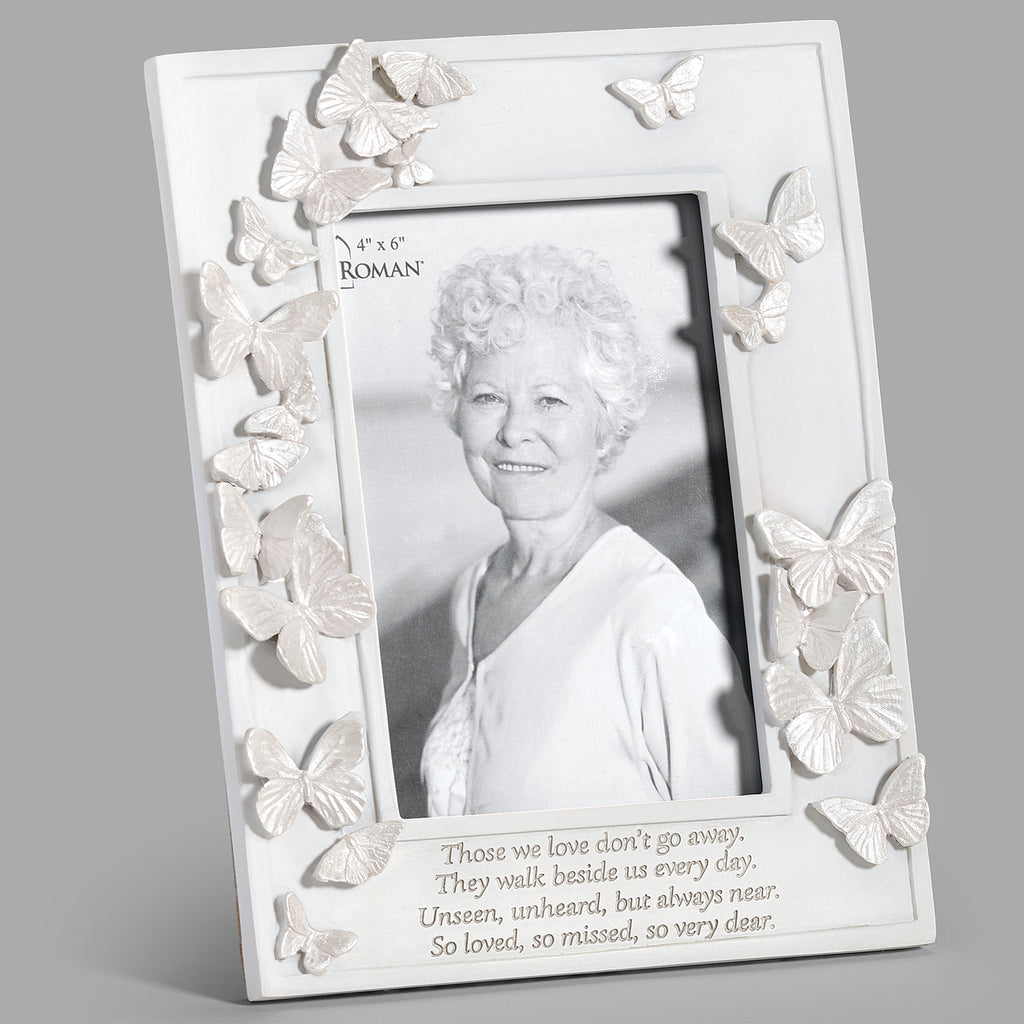 The In Loving Memory Butterfly Memorial Frame provides a heartfelt way to honor cherished memories. With its serene design, delicately sculpted butterflies, and a comforting inscription, it serves as a symbolic reminder of love, transformation, and remembrance. A beautiful addition to memorial displays, shelves, or mantels, and a thoughtful sympathy gift for someone grieving a loss.