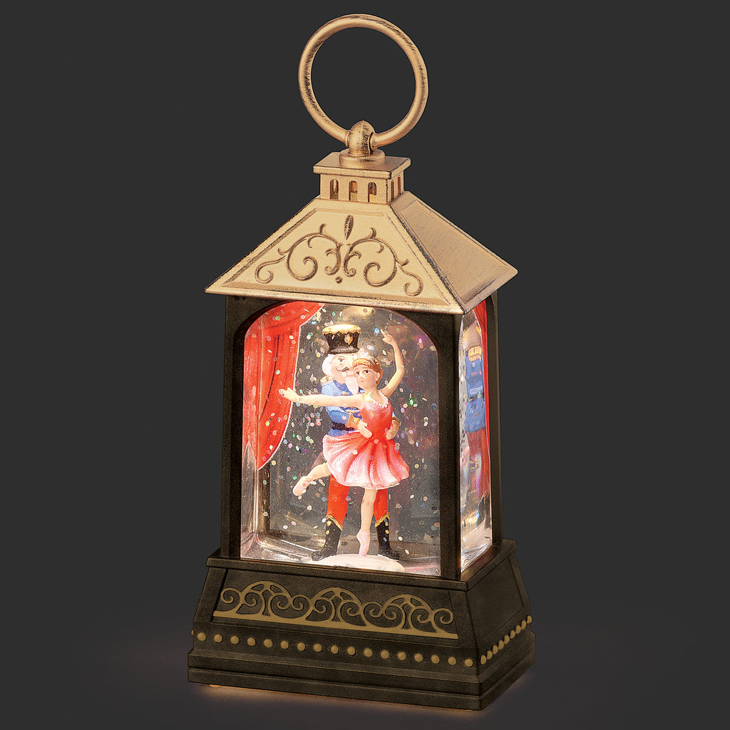Bring the magic of the season to life with this Nutcracker Ballet lantern from the Shimmering Merry Lites collection. Featuring a beautifully lit scene of the beloved holiday performance, this piece sparkles with festive charm. Perfect for mantels, shelves, or seasonal displays, it adds elegance and enchantment to your holiday décor.