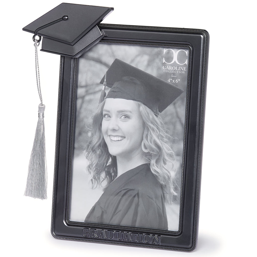 This elegant Graduation Frame from the Caroline Collection features a sleek black finish with a classic cap and tassel accent. The word “Graduation” is subtly embossed along the base, creating a refined design that celebrates achievement while showcasing a proud milestone. A meaningful keepsake, it’s perfect for preserving memories of this special accomplishment.