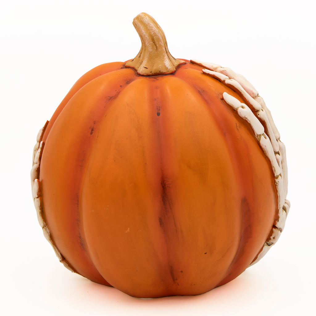 Add eerie charm to your Halloween décor with this resin pumpkin featuring a glowing graveyard scene. Detailed with skeletons, tombstones, bats, and a witch flying across a twilight sky, the design comes to life when lit from within. Perfect for mantels, shelves, or as a spooky centerpiece, this pumpkin adds a haunting glow to your seasonal display.