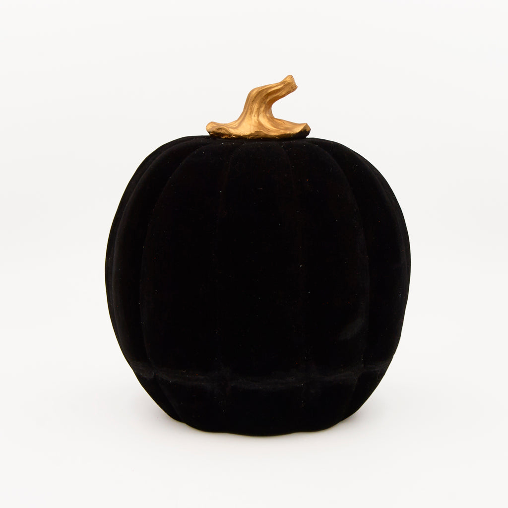 Add haunting elegance to your Halloween décor with this lighted black flock pumpkin. Its soft, velvety surface contrasts beautifully with the swirling golden glitter inside, creating a look that feels both spooky and sophisticated. It’s the perfect accent for mantels, shelves, or tabletops where you want to add a stylish seasonal glow.