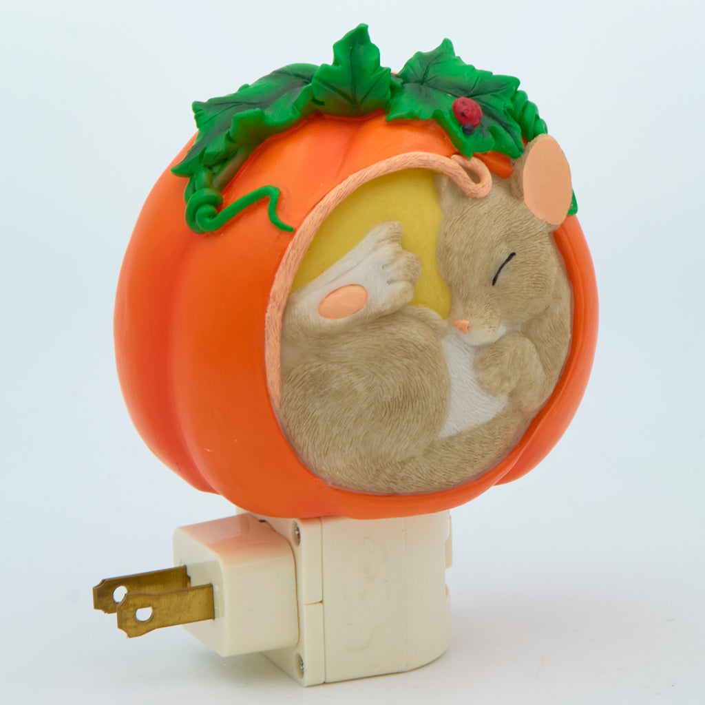 Infuse your fall decor with warmth and charm through this delightful night-light from the Charming Tails collection by Dean Griff. Featuring an adorable mouse curled up inside a glowing pumpkin, this piece casts a soft, comforting light—perfect for hallways, bedrooms, or seasonal displays. Complete with the heartfelt verse: “Cozying in for Autumn,” it adds a cozy, whimsical touch to your autumnal ambiance.