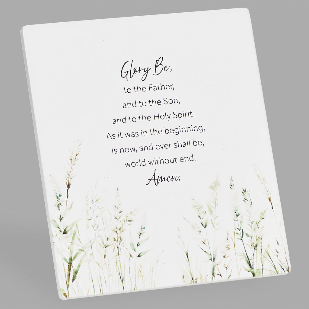 This Glory Be Wall Plaque displays the beloved doxology in a graceful font surrounded by soft botanical details. Made of durable resin, it includes an easel back for flexible placement in your home, office, or prayer space. A meaningful piece that brings spiritual reflection and beauty into your everyday surroundings.