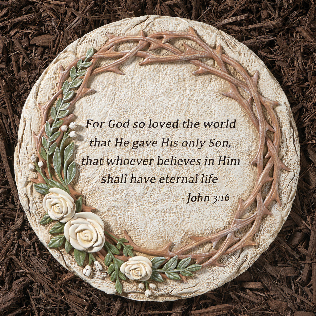 The Crown of Thorns Garden Stone is beautifully crafted with intricate detailing, serving as a powerful symbol of devotion and spiritual strength. Designed with a built-in keyhole hanger for versatile display, it can be placed on a garden wall, fence, patio, or in a memorial space as a lasting expression of faith.
