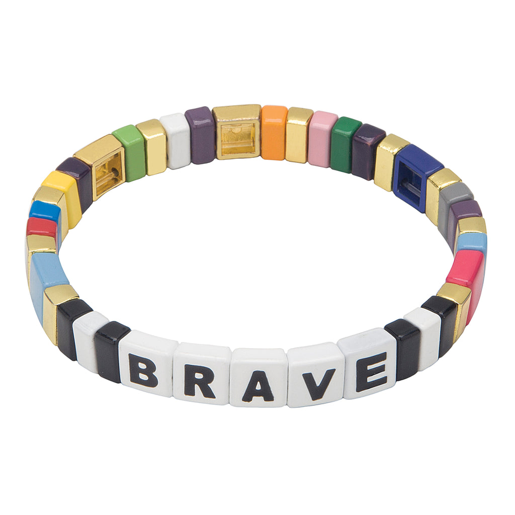 A bold and colorful reminder of strength, the Always Brave Tile Bracelet inspires courage in every step. With its playful design and powerful message, it's a meaningful gift or daily token of resilience.