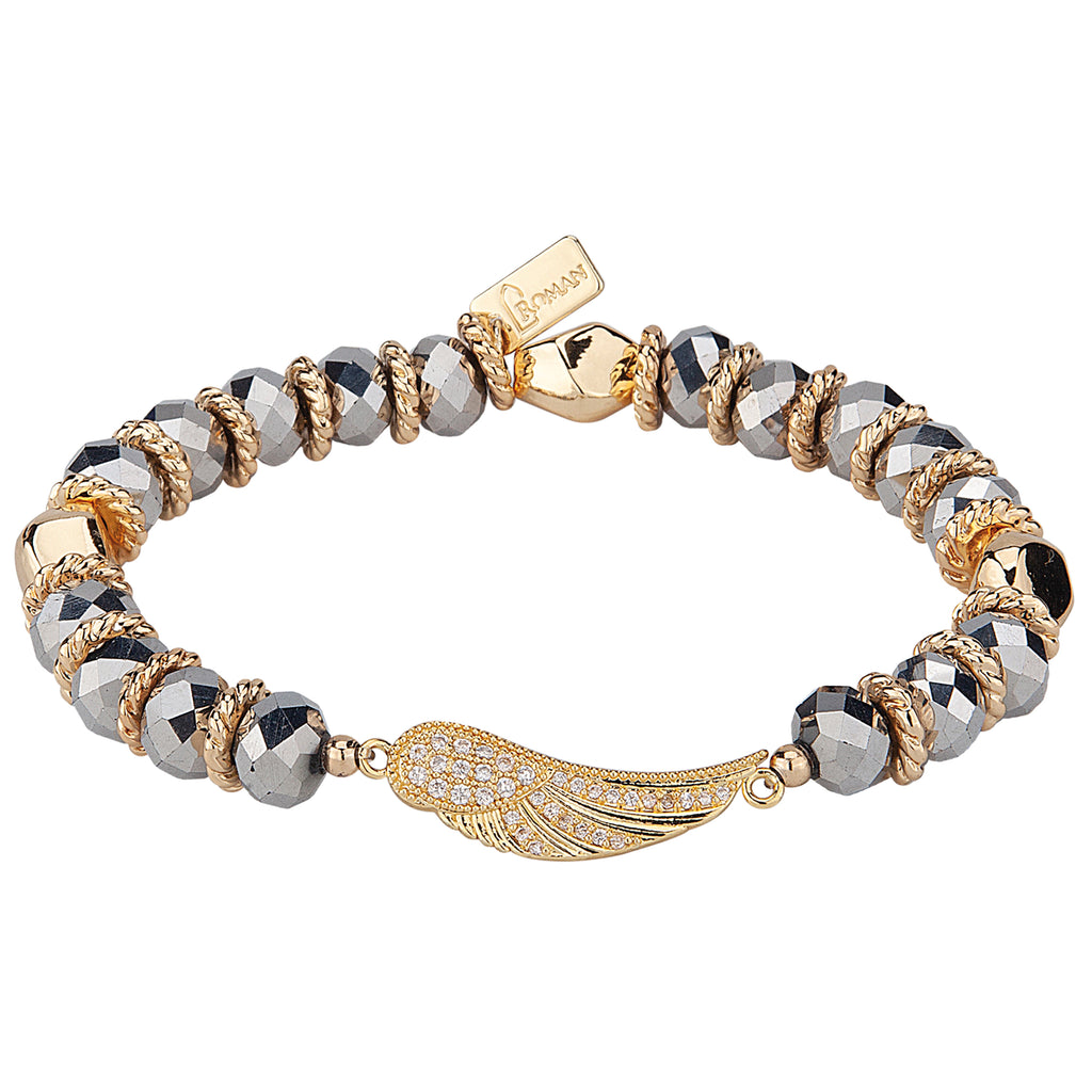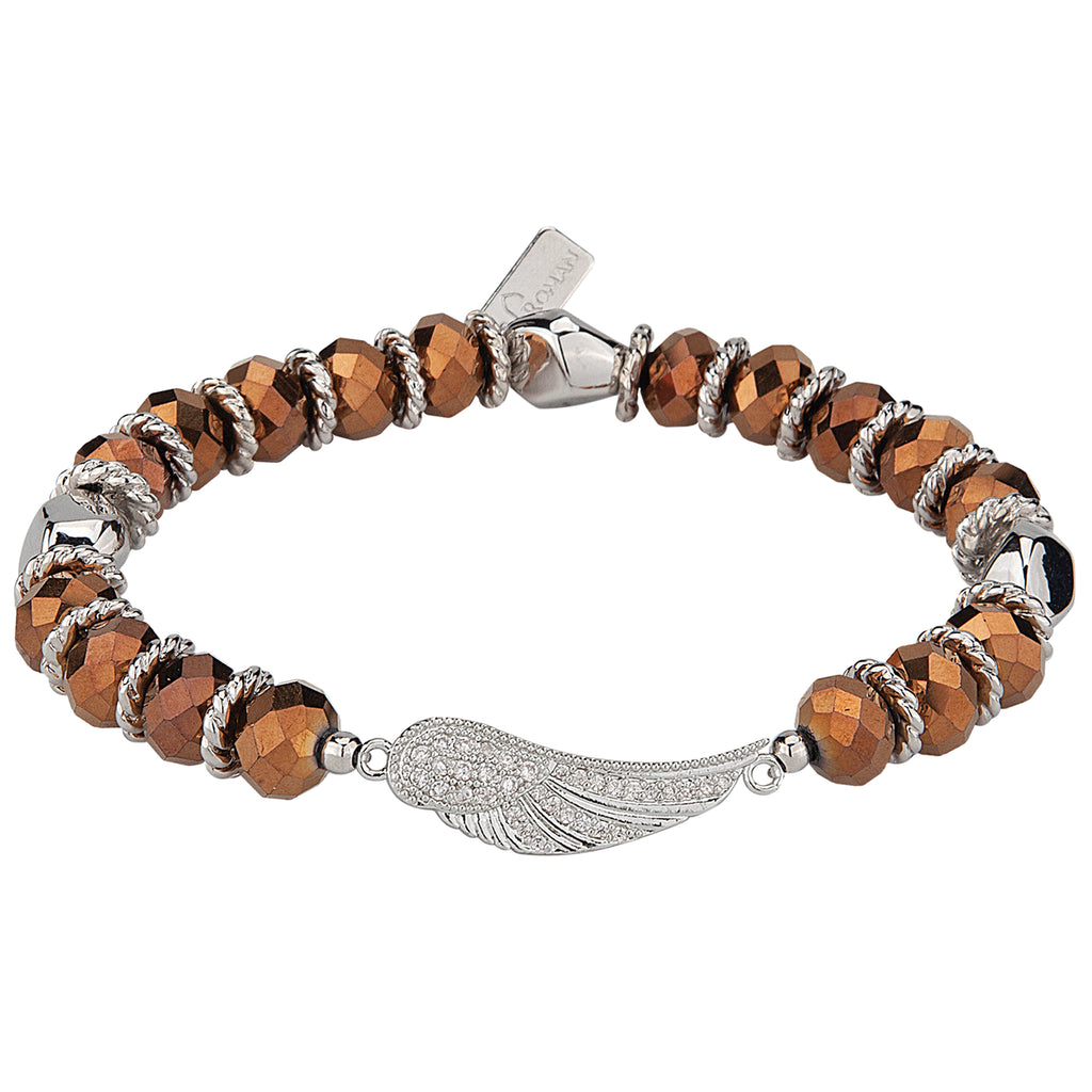 This elegant stretch bracelet is designed with faceted crystal beads that shimmer with every movement, accented by a sculpted angel wing charm. Symbolizing comfort, guidance, and faith, it serves as a gentle reminder that you are never alone. Available in multiple color ways, each bracelet offers a unique expression of style and meaning, perfect for everyday wear or as a heartfelt gift of encouragement.