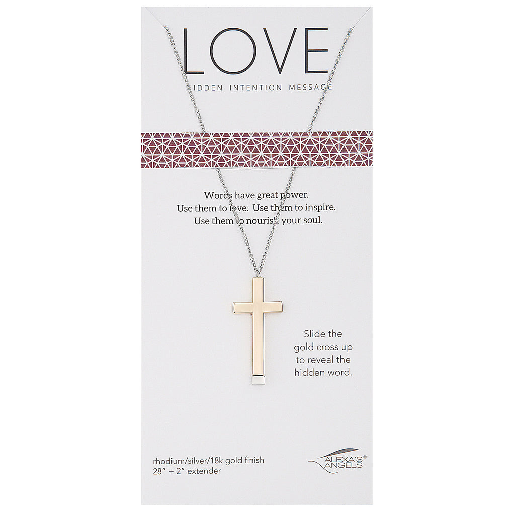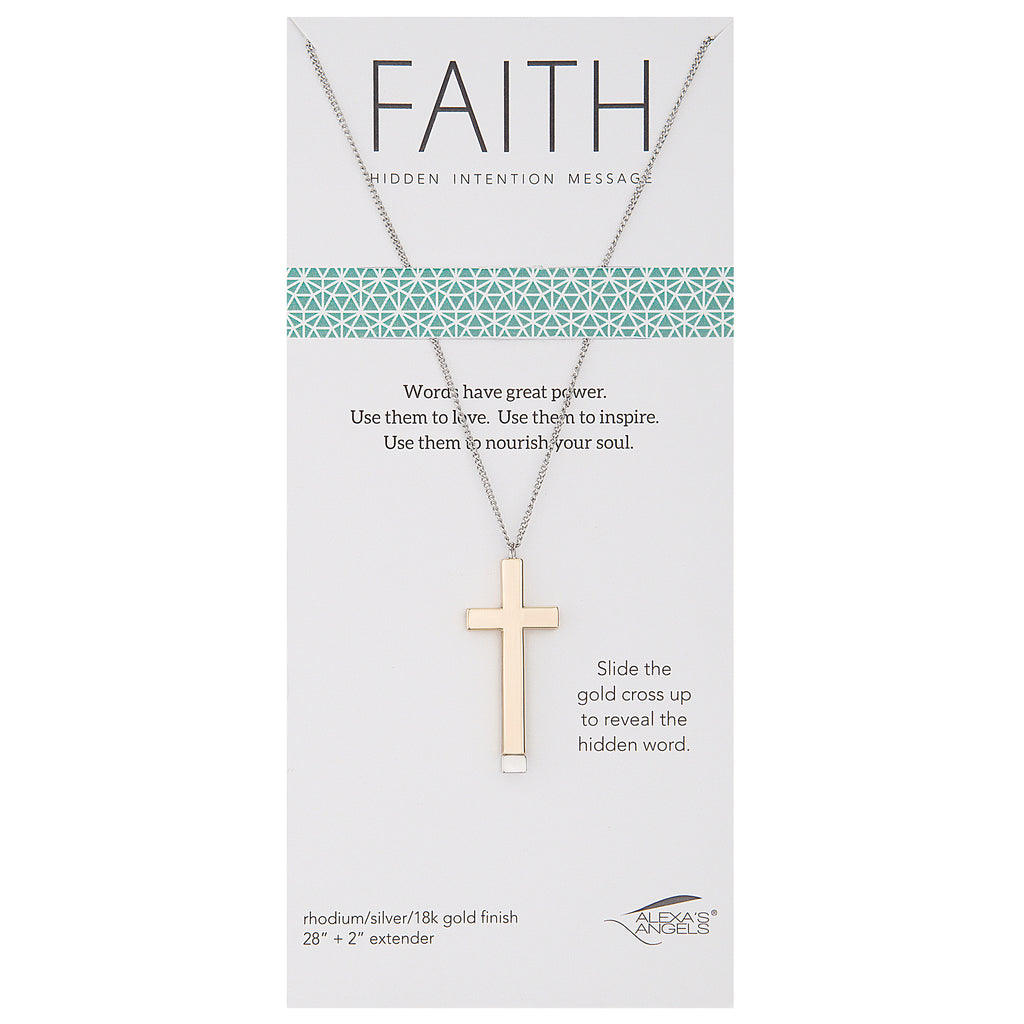 Carry a message of inspiration close to your heart with the Hidden Message Cross Necklace. Each necklace features a sliding gold-finish cross that reveals a hidden word - "Faith", "Hope", or "Love" - engraved underneath. With a sleek, minimalist design, this necklace is a beautiful and meaningful symbol of spiritual strength, encouragement, and inner peace. Choose the word that speaks to your journey or gift one to someone in need of a little light.