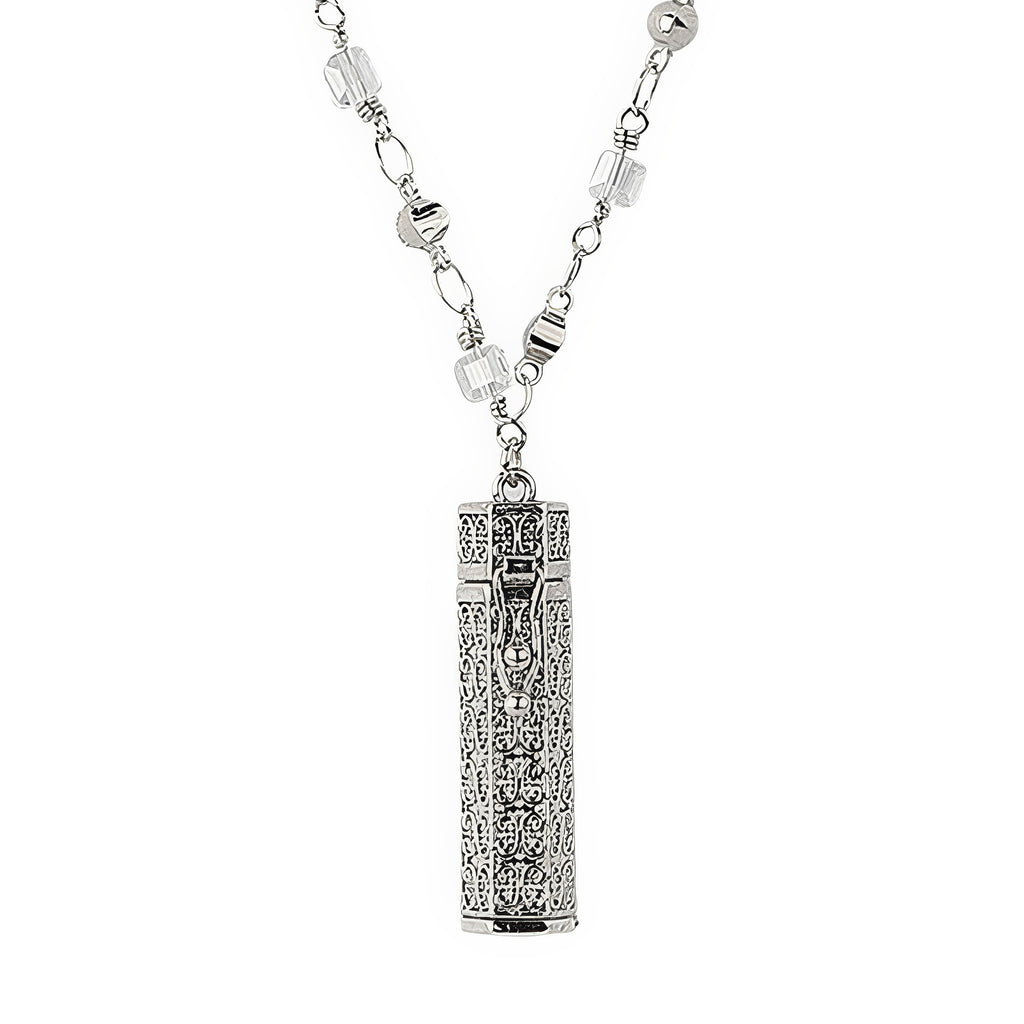 Gracefully designed with round glass beads, this Prayer Box Necklace holds a crystal-accented pendant that opens to store written prayers. A meaningful reminder that God is the answer to all your needs. Available in silver or gold.