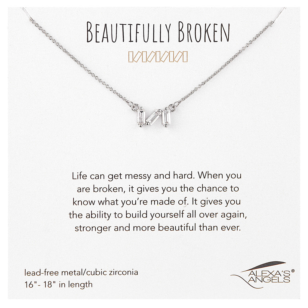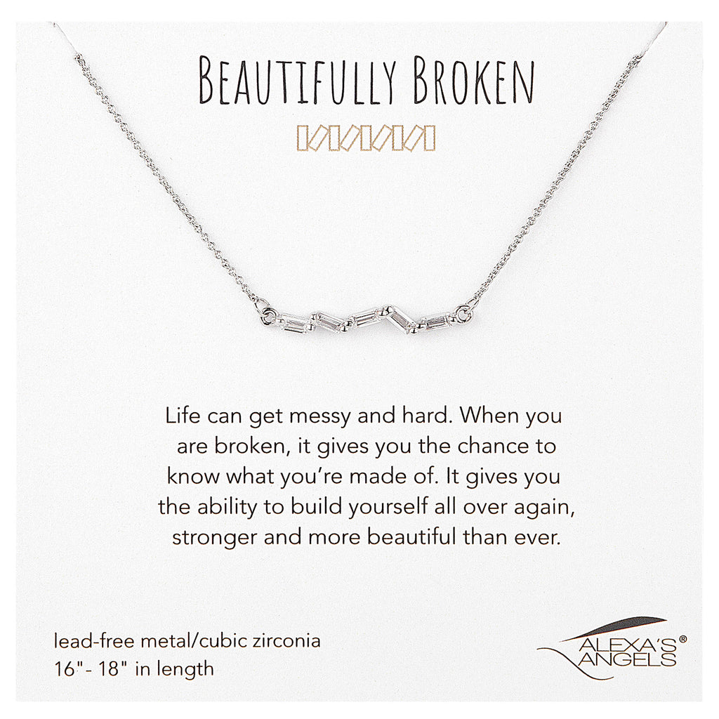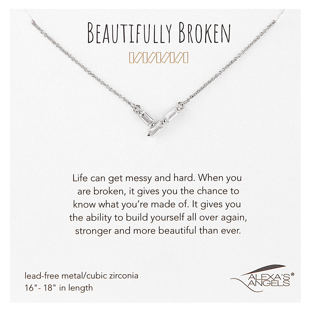 The Beautifully Broken Silver-tone Necklace is a meaningful symbol of healing and resilience. With shimmering baguette-cut cubic zirconia that mimic "cracks"‚ each design honors the strength found in life's challenges. Worn close to the heart, it's a reminder that we can rebuild‚ stronger and more beautiful than before. Includes a gift bag for thoughtful gifting.
