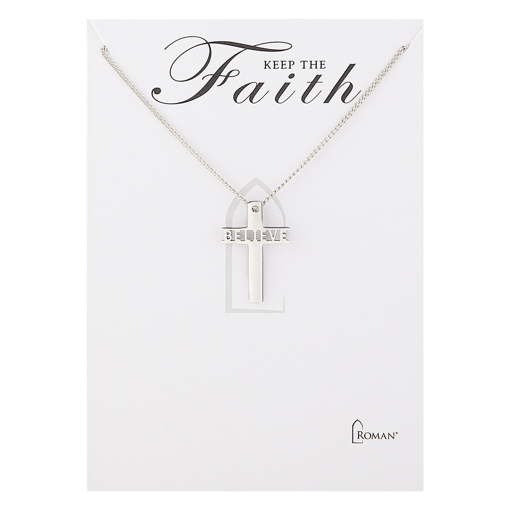 This stainless steel cross necklace blends simplicity with spiritual strength. Each design features a powerful word engraved across the horizontal bar, symbolizing faith, love, or encouragement for life’s journey. A crystal-accented bail adds a subtle shimmer, making it a timeless accessory and meaningful gift for daily wear, devotion, or encouragement.