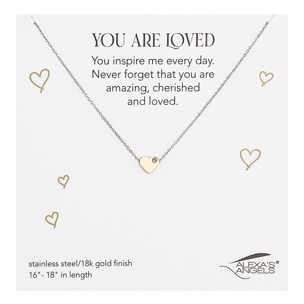 Let them know just how cherished they are with the "You Are Loved" necklace. Featuring a delicate heart charm accented with a sparkling crystal, this necklace serves as a daily reminder of love, encouragement, and appreciation. It's a meaningful gift for someone who inspires you‚ or a beautiful way to treat yourself with kindness and affirmation.