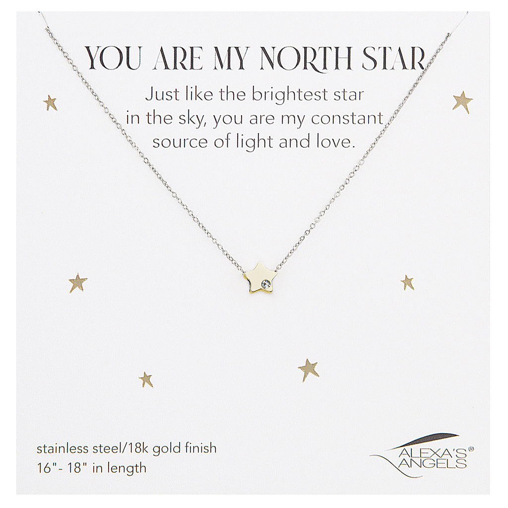 Just like the brightest star in the sky, this necklace is a symbol of constant love and light. The "You Are My North Star" necklace features a delicately polished star charm accented with a sparkling crystal, making it a beautiful and meaningful gift for someone who guides you or lights your path. A timeless reminder of how much they mean to you.