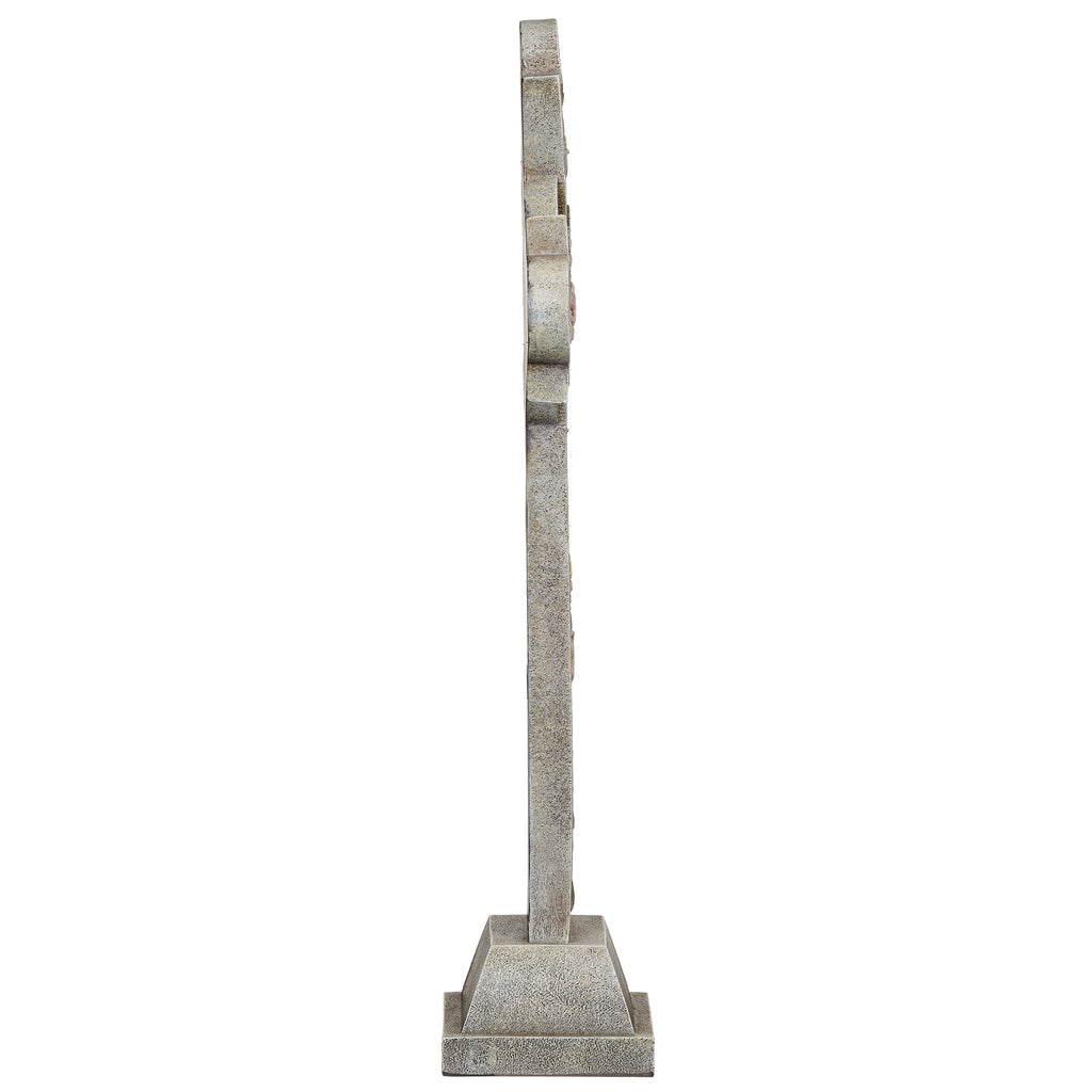 This intricately sculpted cross brings elegance and reverence to any outdoor setting. Raised rose blooms in soft blush, ivory, and gold cascade down the face of the cross, accented by textured green leaves and a sturdy stone-style base. Whether placed in a garden or memory space, it offers a lasting tribute to beauty, hope, and faith.