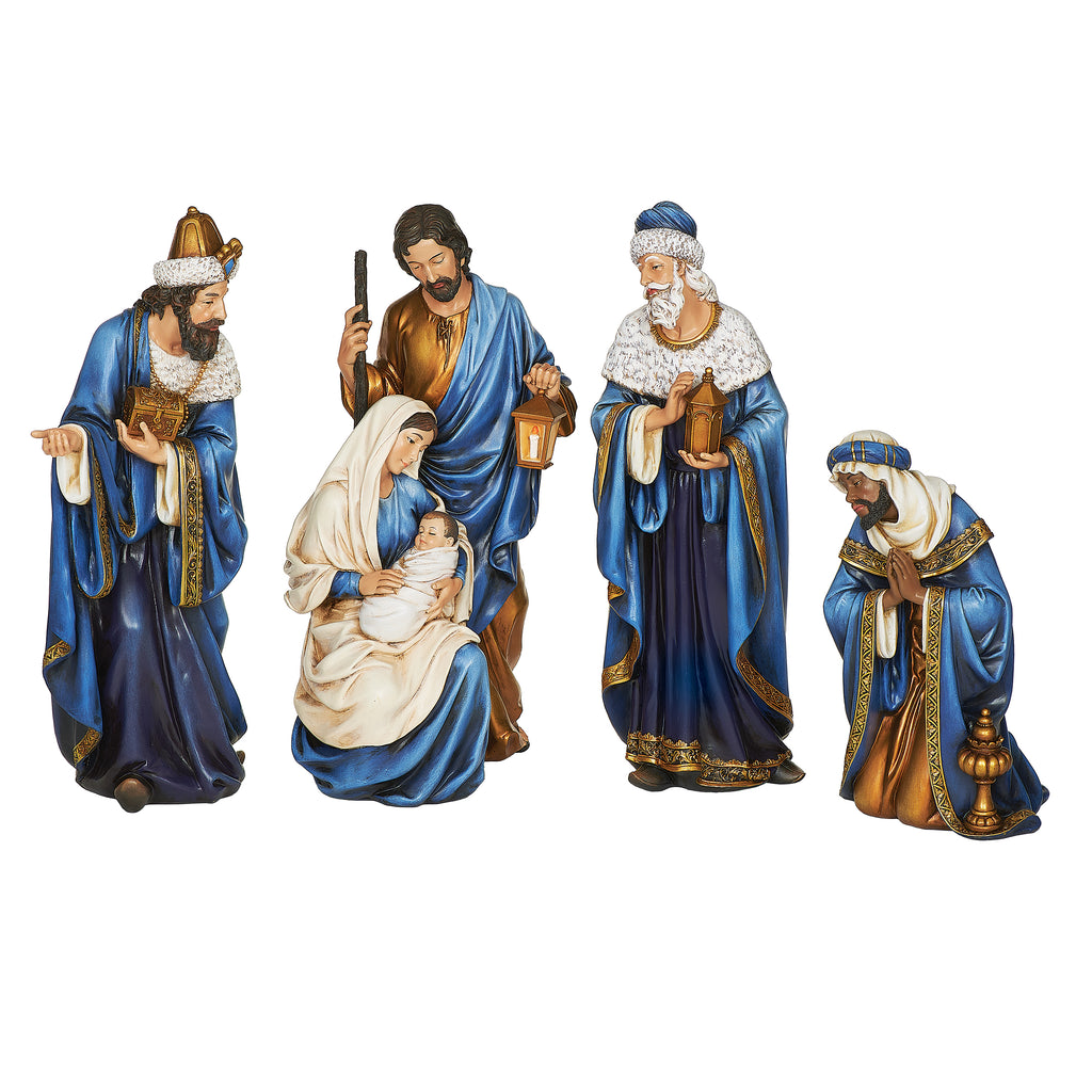 From the Joseph's Studio Collection, this 4-piece nativity set features the Holy Family and an angel in stunning blue and gold garments. Each figure is sculpted with care and painted with rich tones that evoke peace and reverence. A sophisticated and faith-filled centerpiece for your holiday display.