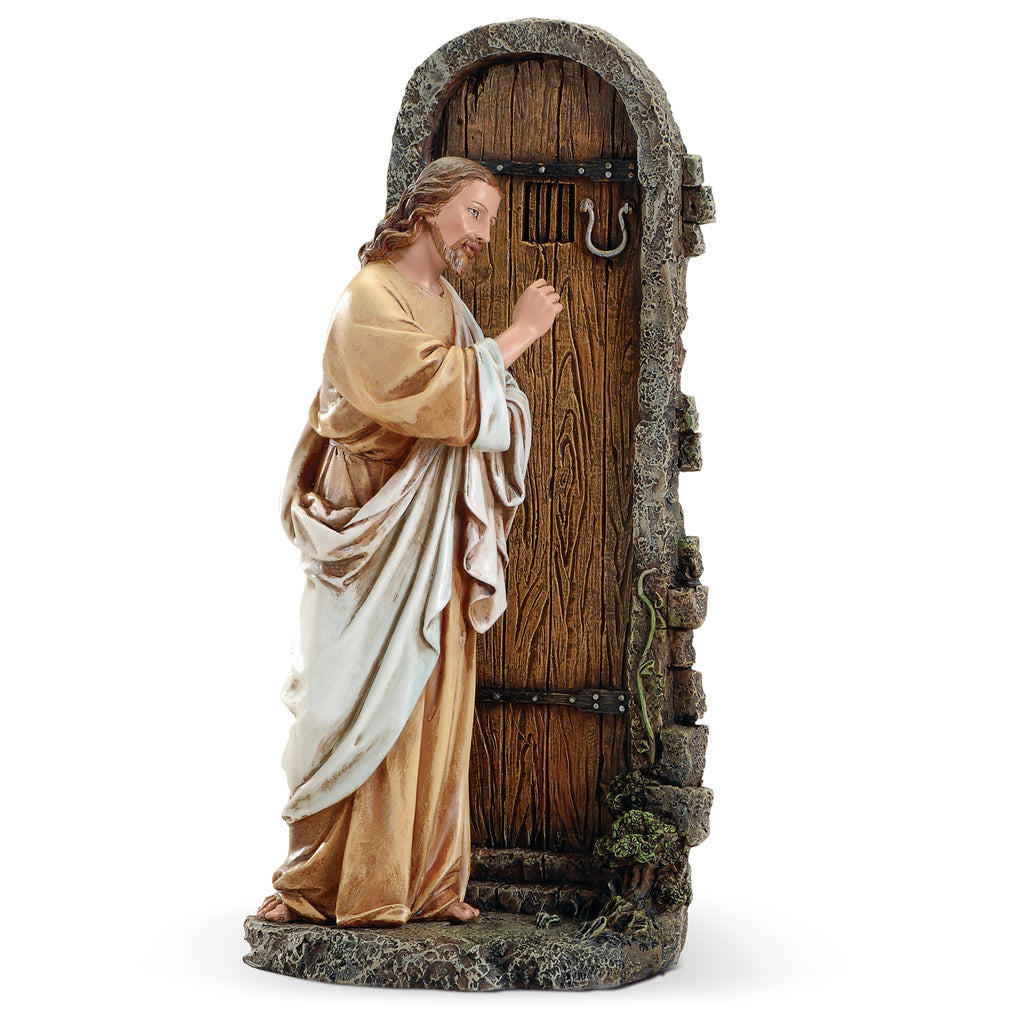 This elegant figure of Jesus knocking at the door, inspired by Renaissance artistry, beautifully symbolizes invitation, faith, and spiritual openness. Rich hand-painted detail brings warmth and realism to this timeless scene, making it a meaningful addition to mantels, shelves, or prayer spaces. A thoughtful gift that inspires reflection on Christ’s enduring message of love and welcome.