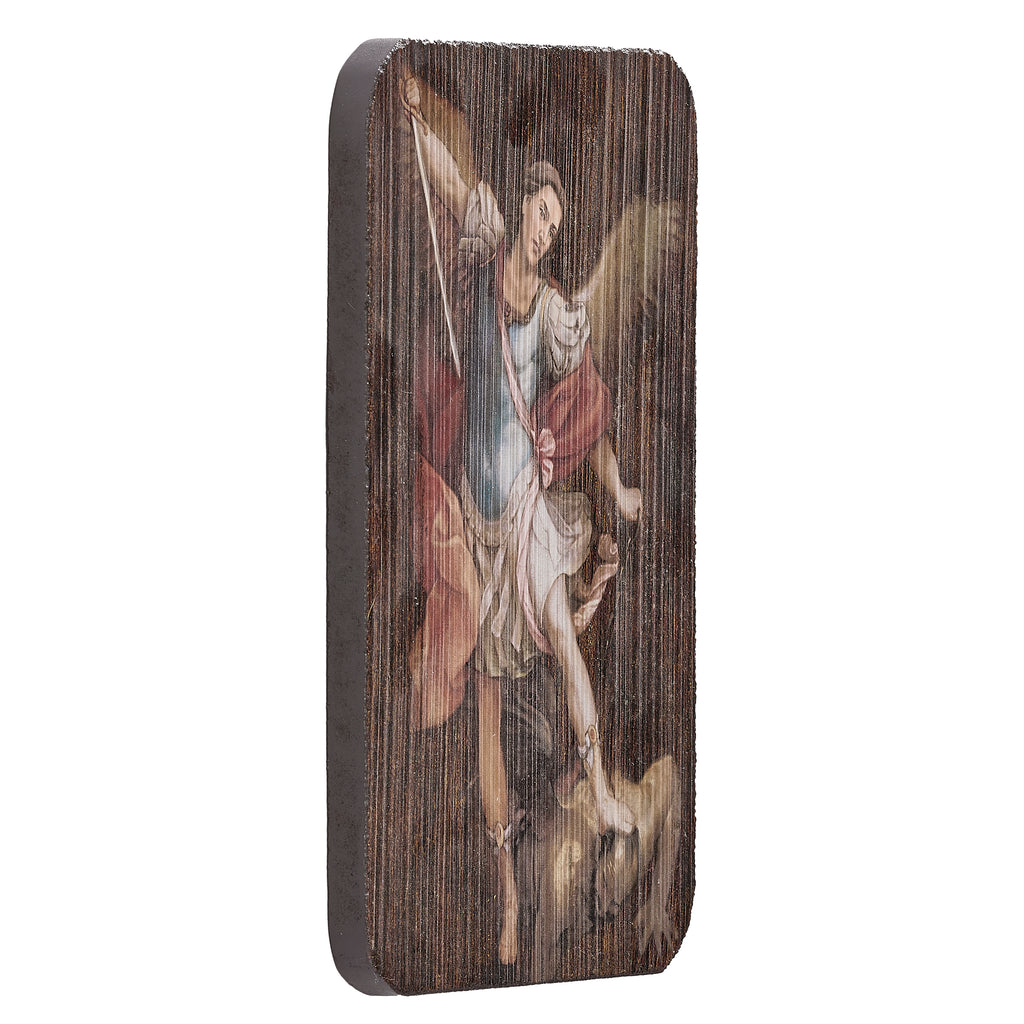 From the Joseph's Studio Collection, this wall plaque features St. Michael the Archangel in detailed relief, capturing his triumph over evil with a sword raised in defense of Heaven. The compact size and powerful imagery make it ideal for home altars, offices, or as a gift of spiritual strength and protection.
