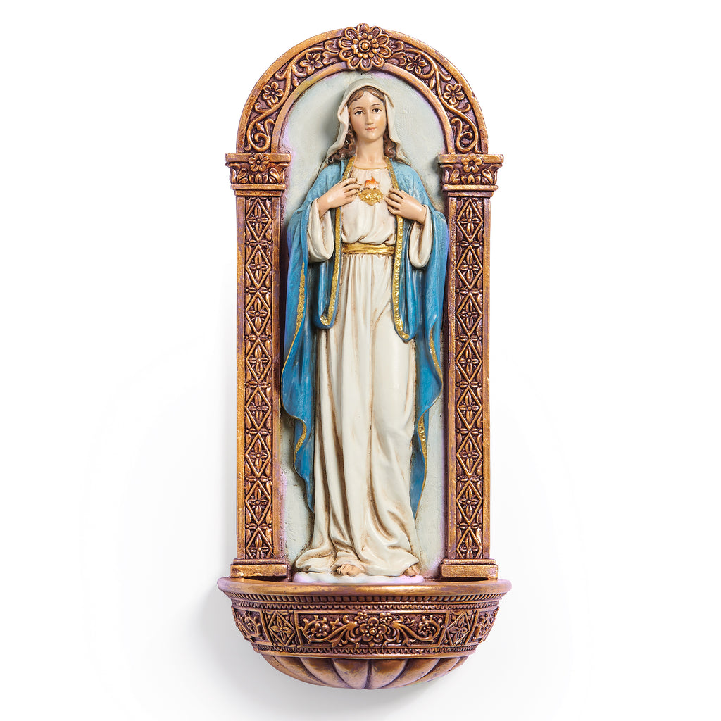 Celebrate devotion with this beautifully detailed Immaculate Heart of Mary Holy Water Font from the Renaissance Collection. Its exquisite craftsmanship and symbolic design make it a meaningful centerpiece for any sacred space, inspiring love, faith, and reverence in your spiritual practice.