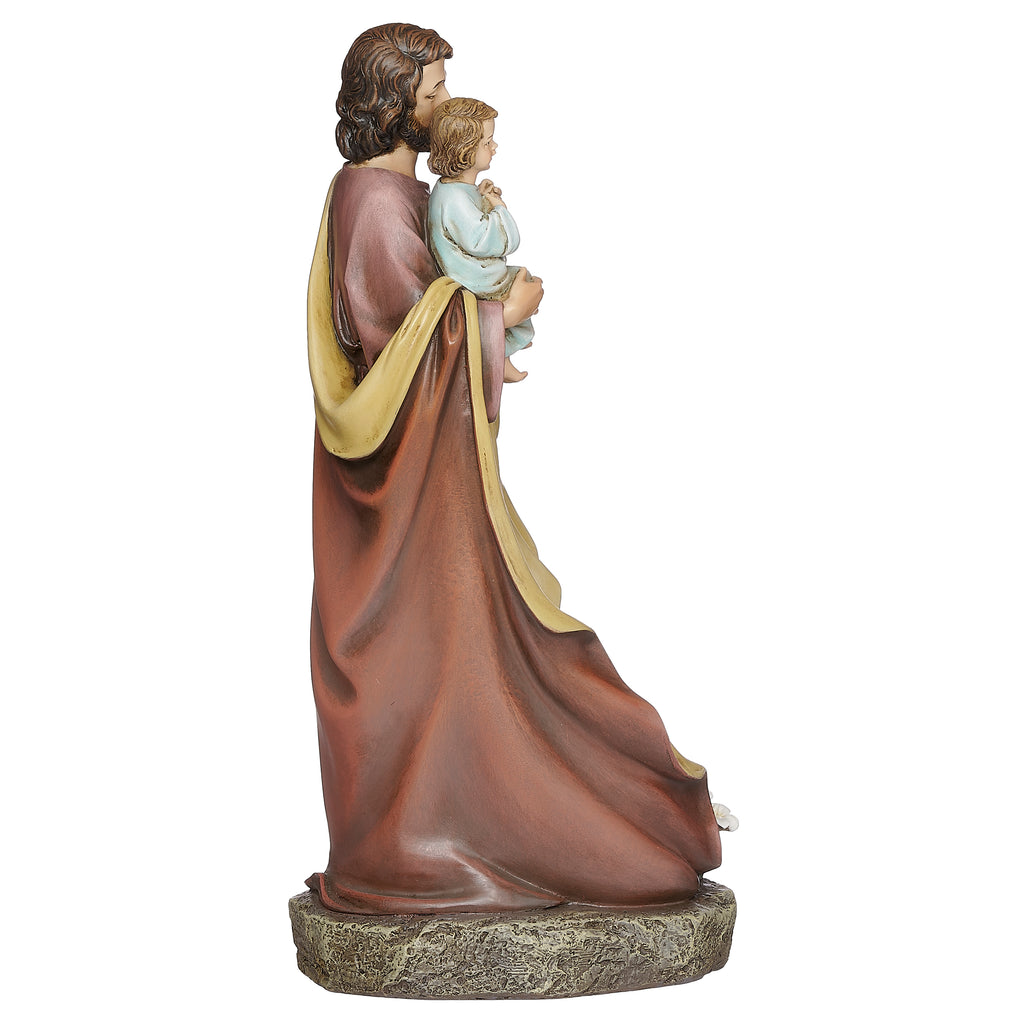 This St. Joseph figure with the Child Jesus offers a peaceful and devotional presence to any prayer space or home. Crafted in resin with rich, hand-painted detail, it features a built-in candle holder designed to hold a standard pillar candle (not included). The base is adorned with lilies‚ a classic symbol of purity and St. Joseph's loving guardianship. Perfect for altars, bedside prayer corners, or memorial lighting.