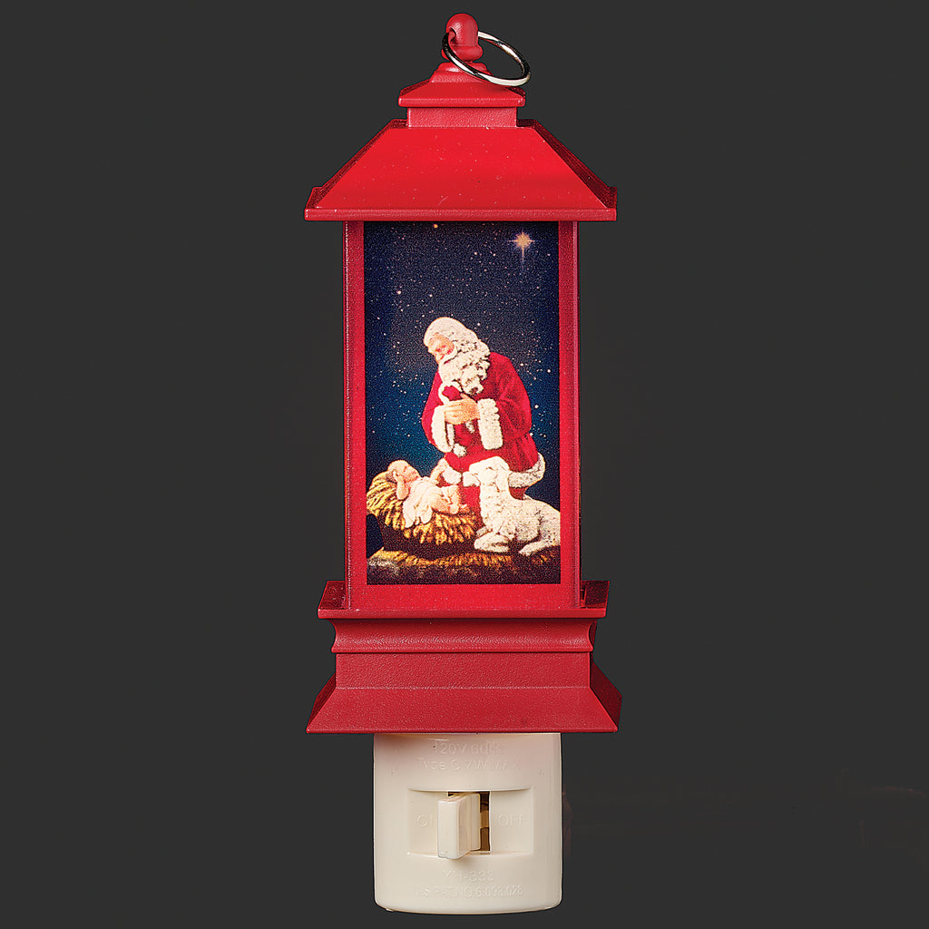 Celebrate the true meaning of Christmas with this heartfelt night-light depicting Santa kneeling in reverence before Baby Jesus within a charming red lantern frame. Its gentle, warm glow creates a peaceful, reverent ambiance that adds a meaningful touch of holiday spirit to any room, filling your space with serenity and seasonal warmth.