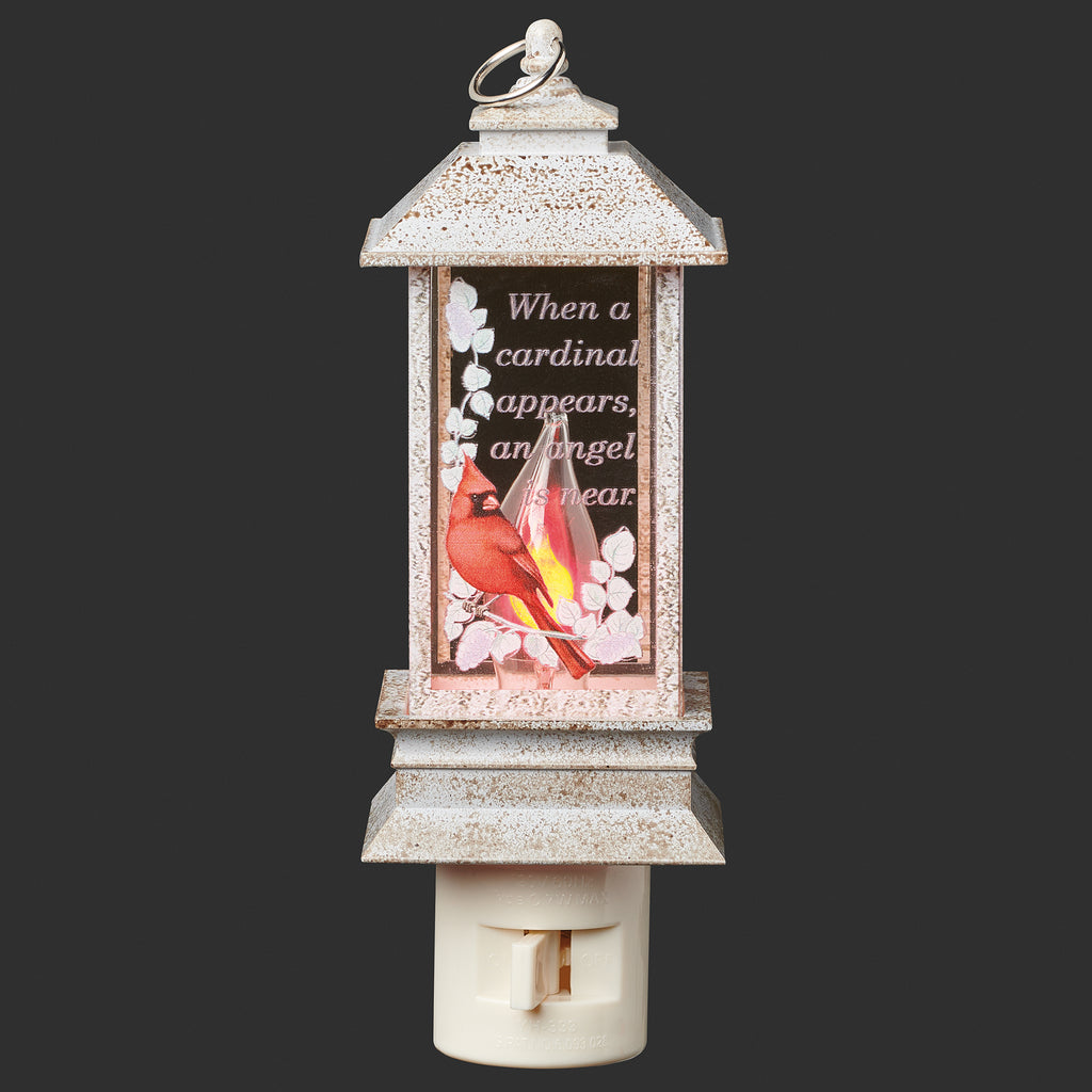 Honor a loved one's memory with this Cardinal Memorial Lantern Night-Light. Featuring a red cardinal and soft flickering flame, the lantern glows with the message: "When a cardinal appears, an angel is near." A peaceful tribute for hallways, bedrooms, or quiet spaces.